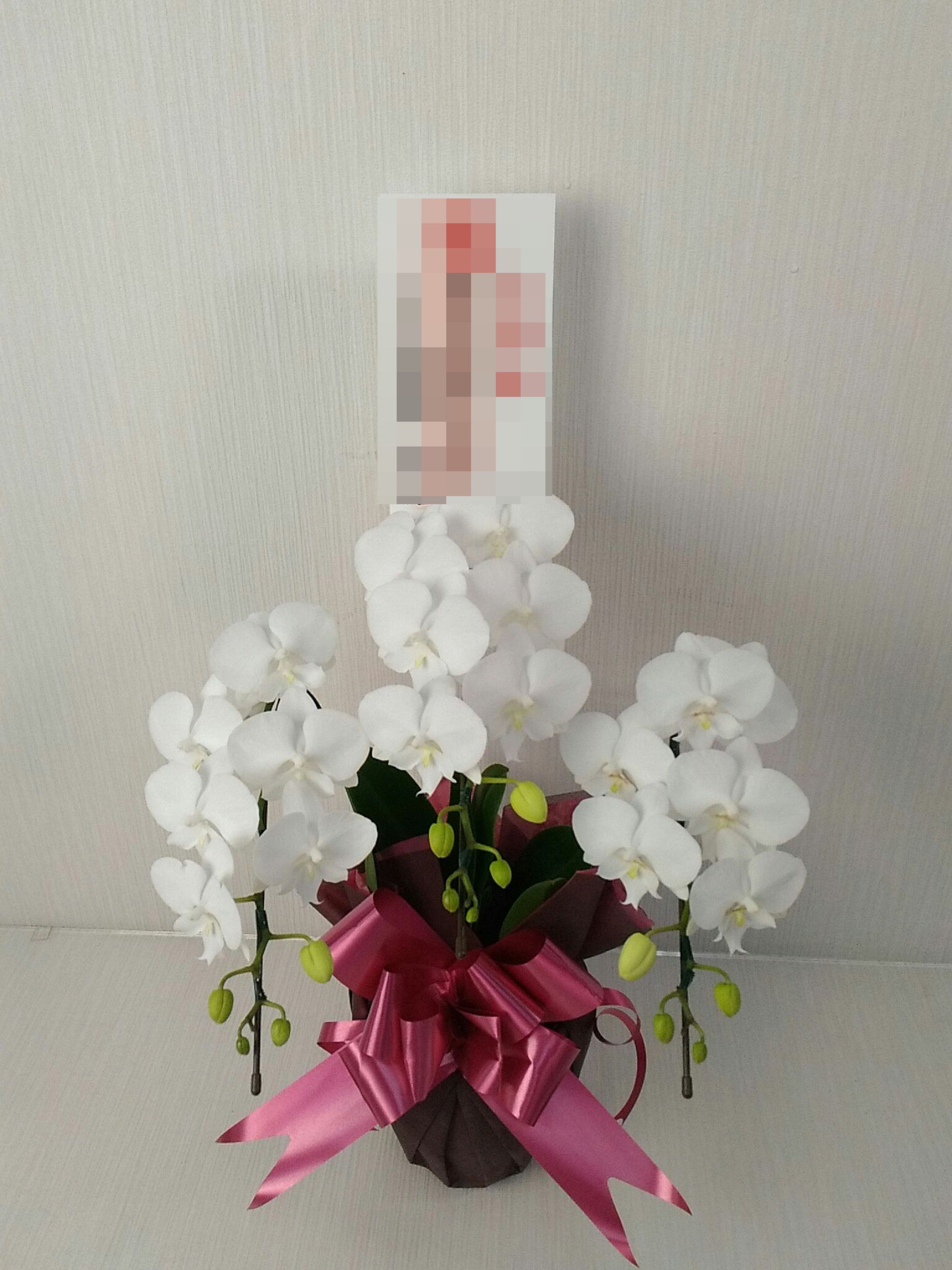 胡蝶蘭の実際にお届けした写真です。花秘書では発送前に写真をメールで送信致しますので安心して大切な顧客や取引様へのギフトにご利用頂けます。