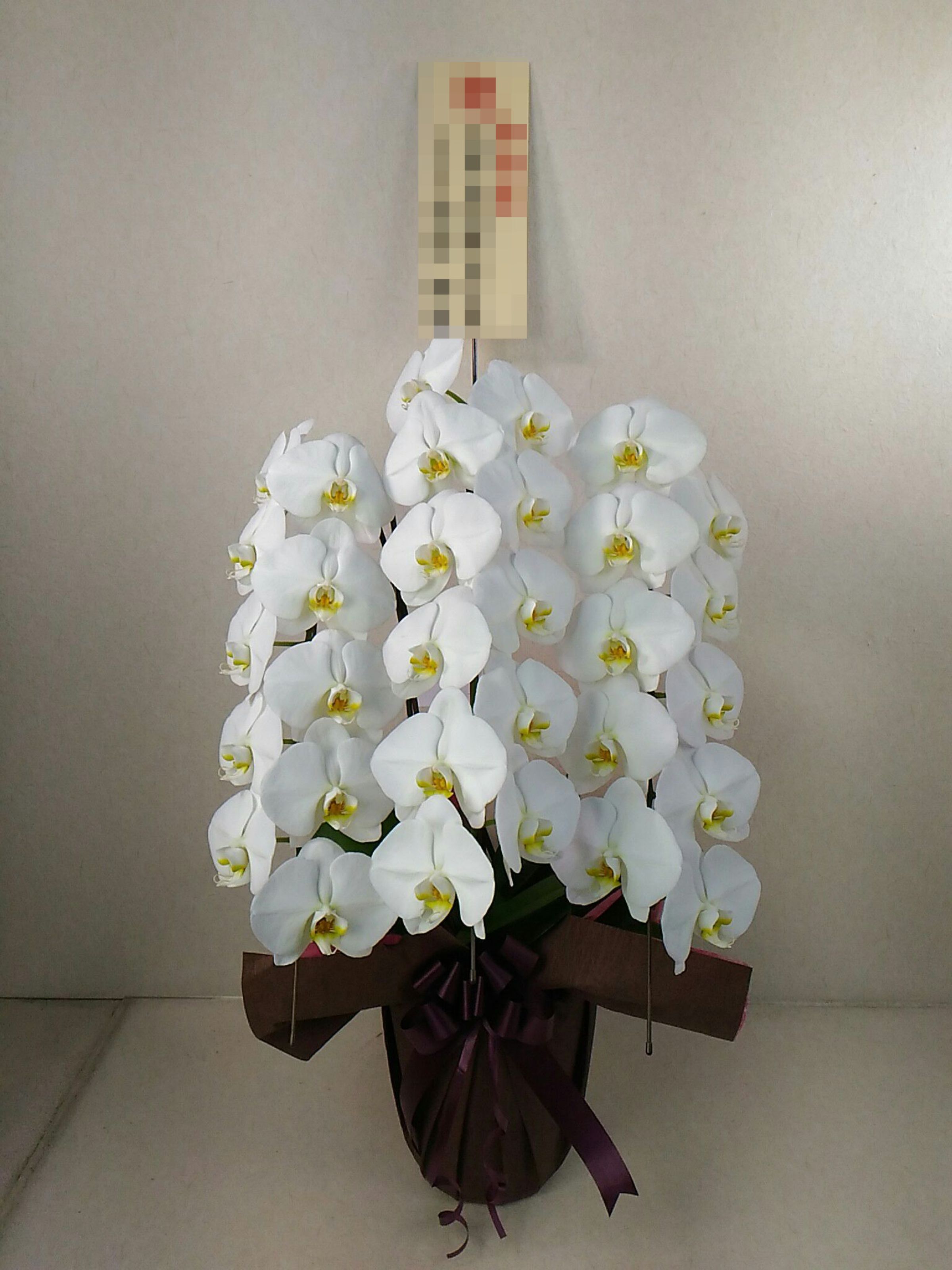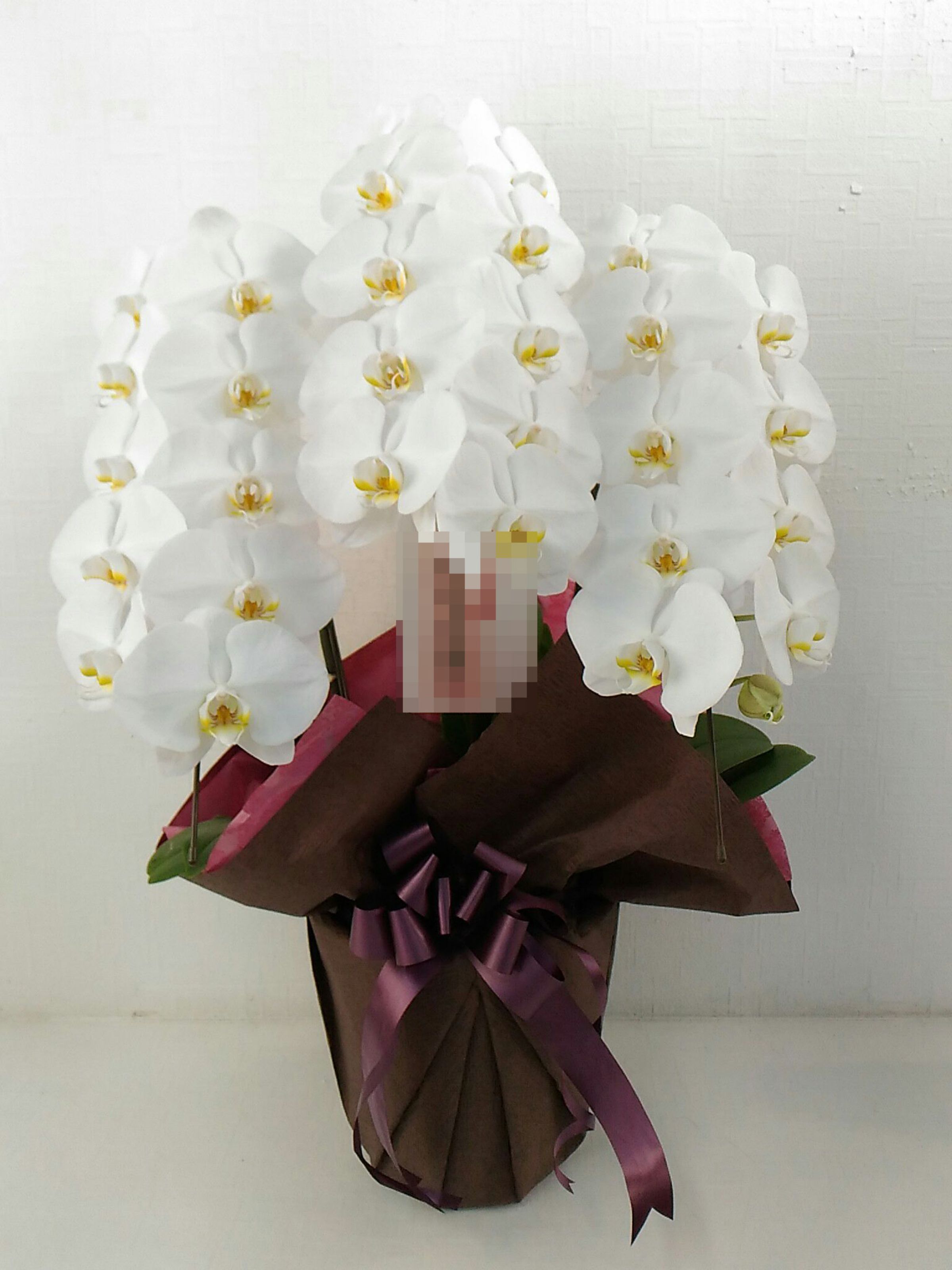 胡蝶蘭の実際にお届けした写真です。花秘書では発送前に写真をメールで送信致しますので安心して大切な顧客や取引様へのギフトにご利用頂けます。