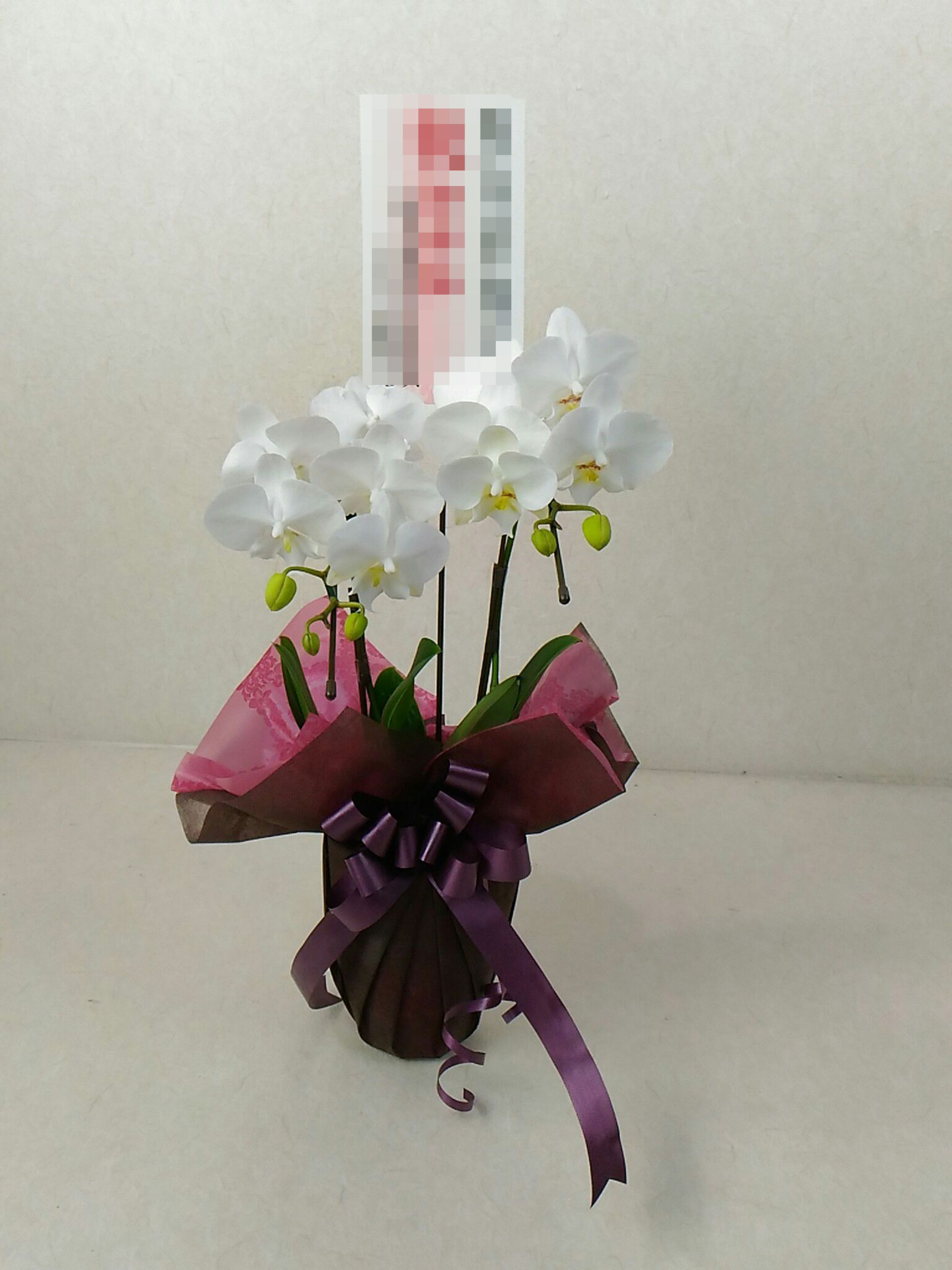 胡蝶蘭の実際にお届けした写真です。花秘書では発送前に写真をメールで送信致しますので安心して大切な顧客や取引様へのギフトにご利用頂けます。