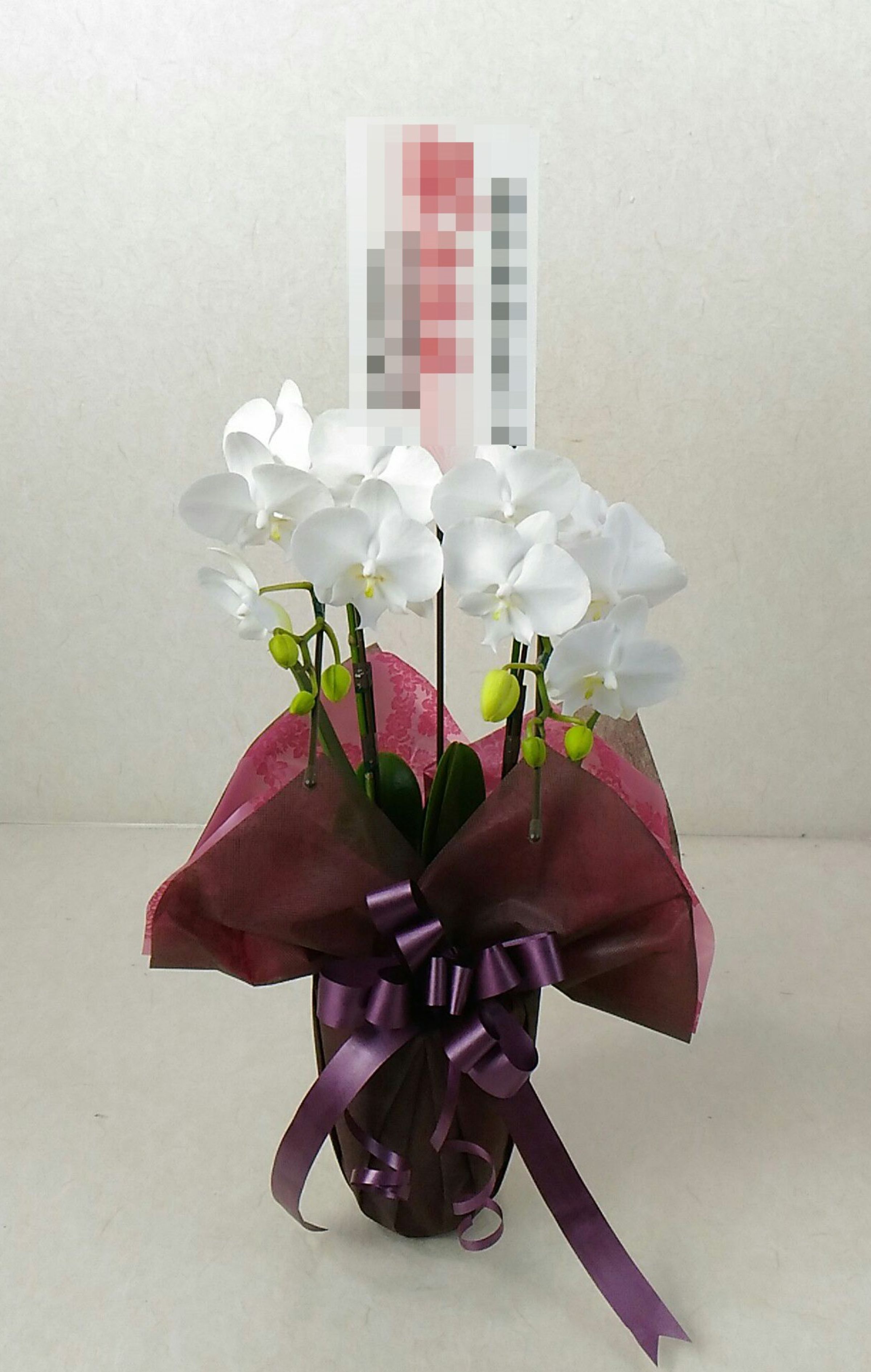 胡蝶蘭の実際にお届けした写真です。花秘書では発送前に写真をメールで送信致しますので安心して大切な顧客や取引様へのギフトにご利用頂けます。