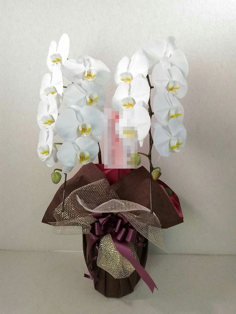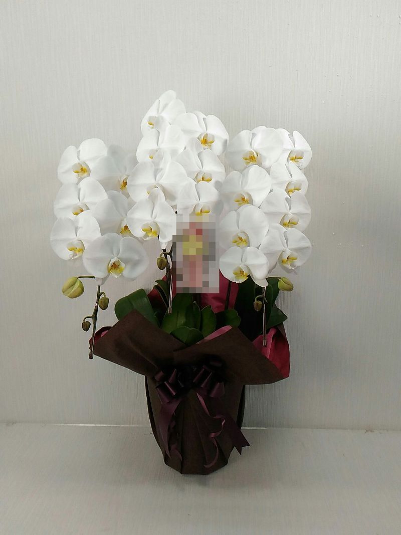 胡蝶蘭の実際にお届けした写真です。花秘書では発送前に写真をメールで送信致しますので安心して大切な顧客や取引様へのギフトにご利用頂けます。