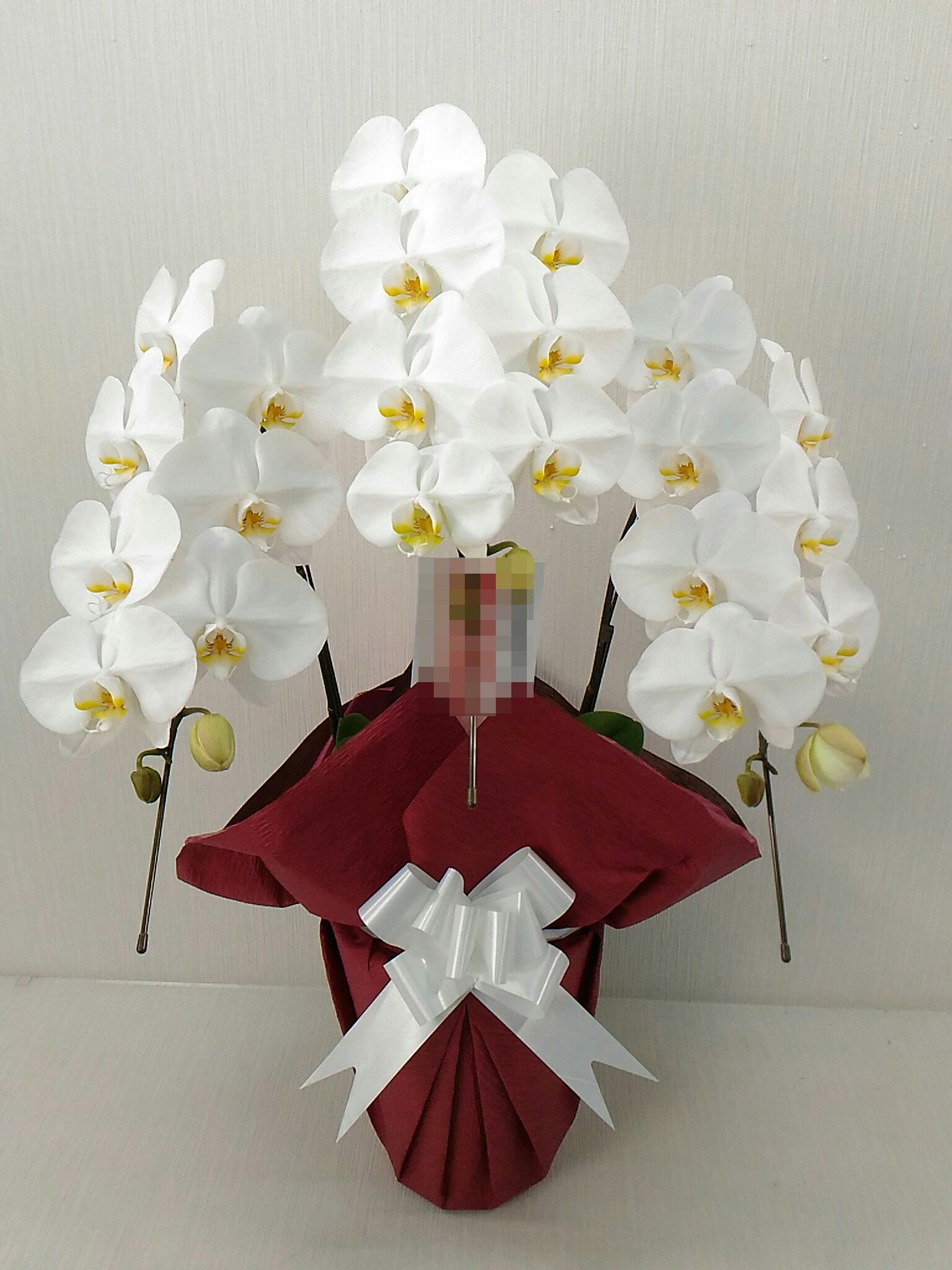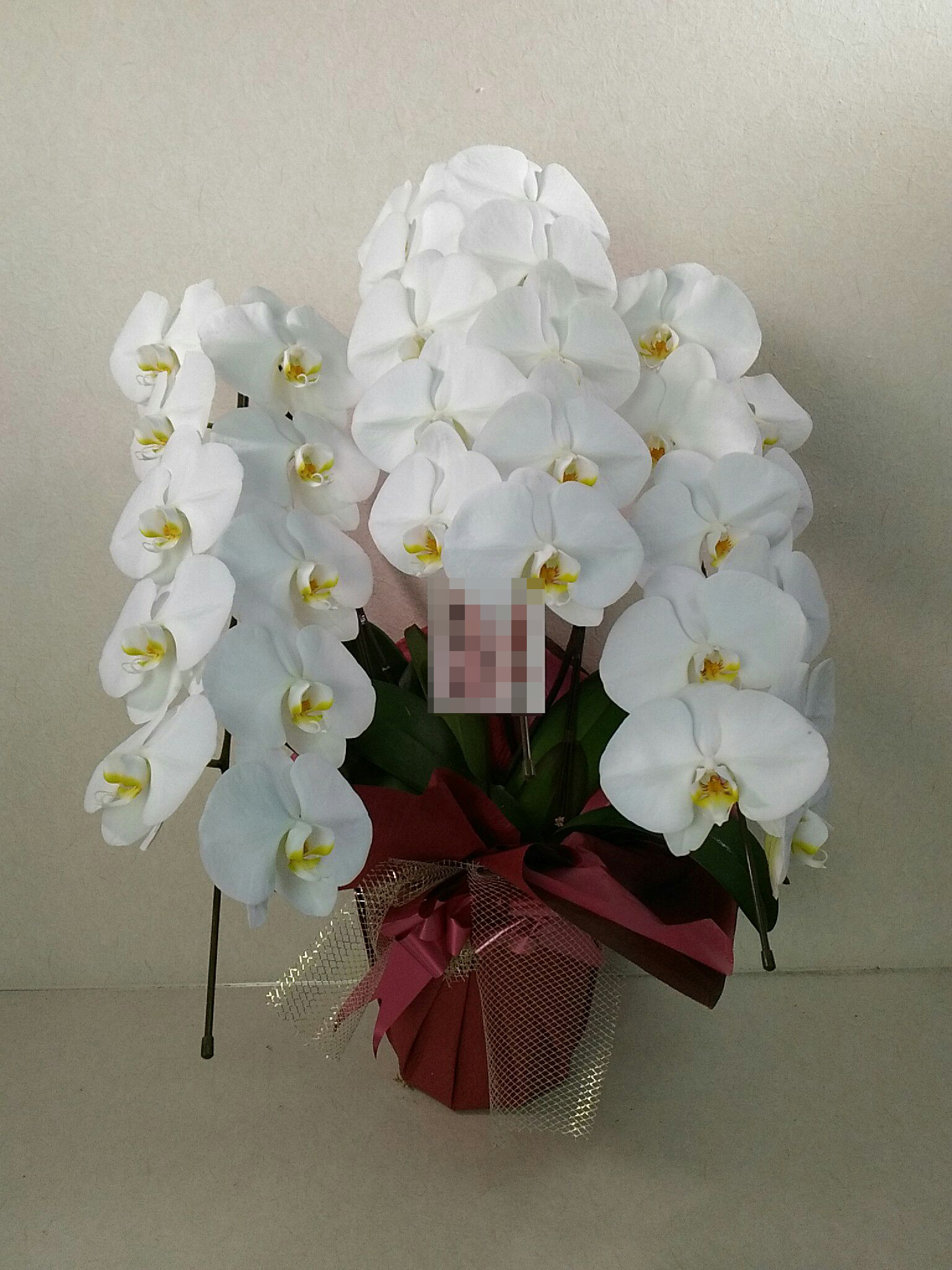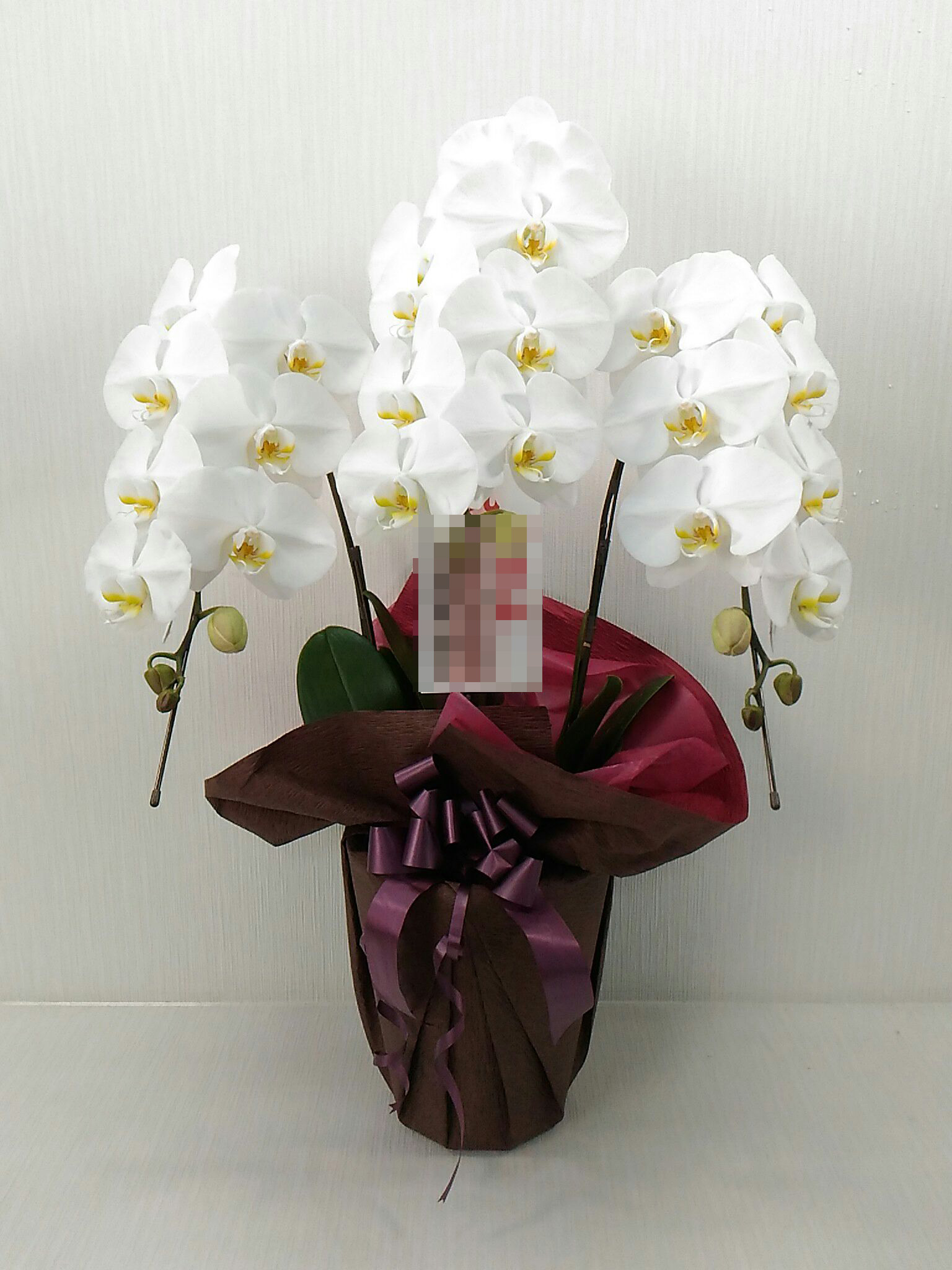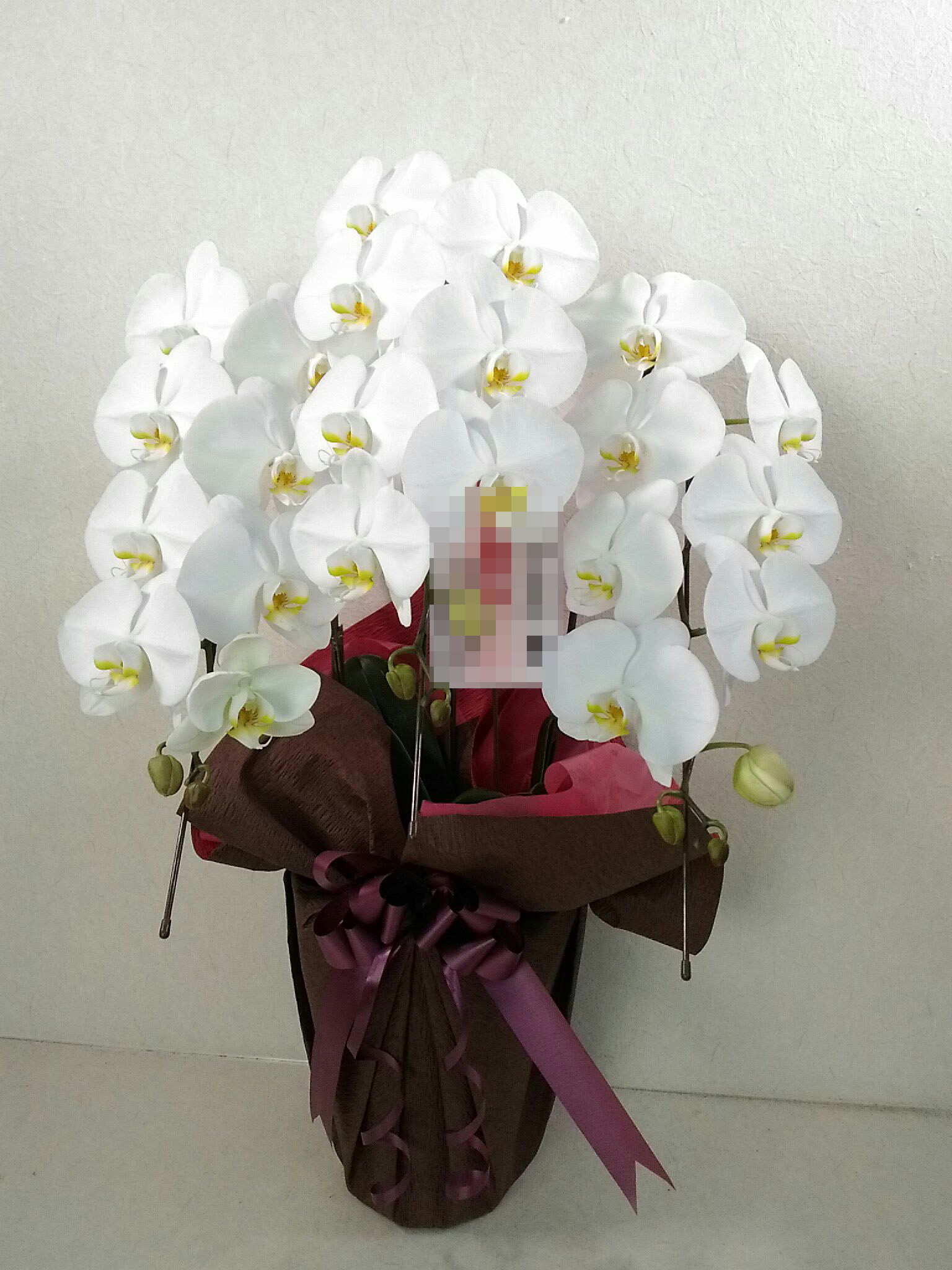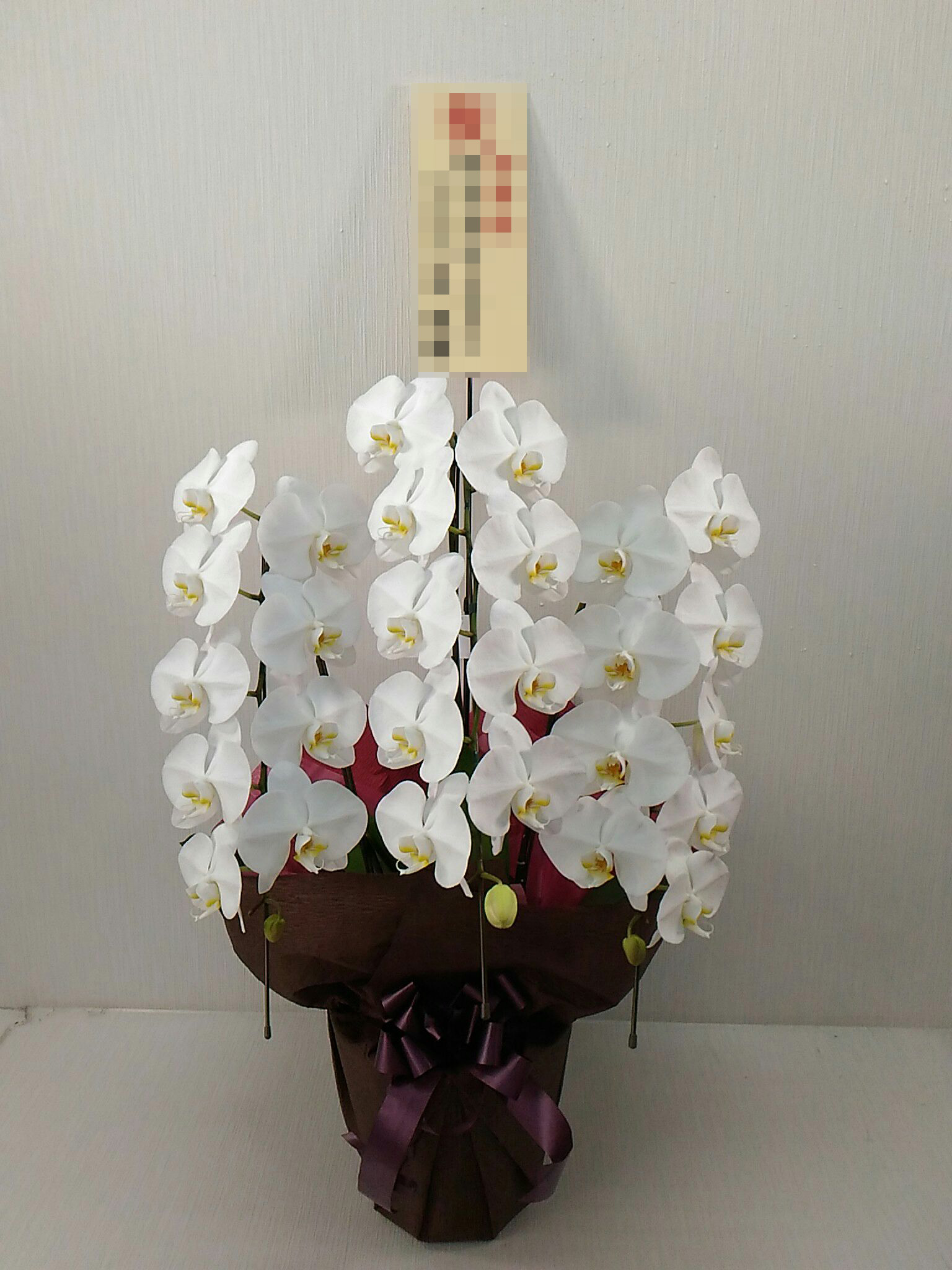胡蝶蘭の実際にお届けした写真です。花秘書では発送前に写真をメールで送信致しますので安心して大切な顧客や取引様へのギフトにご利用頂けます。