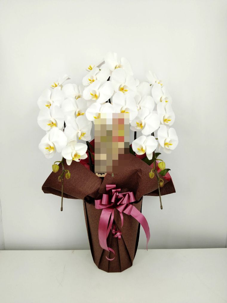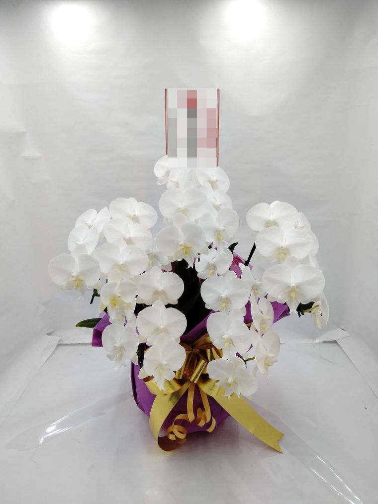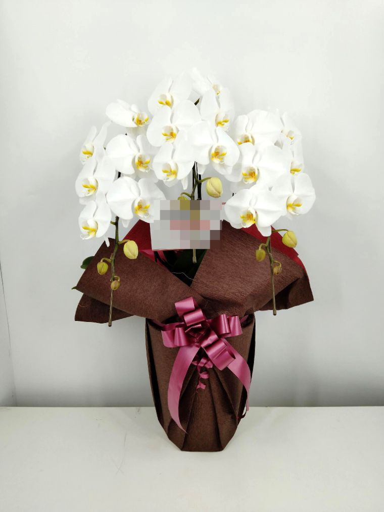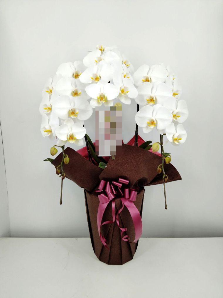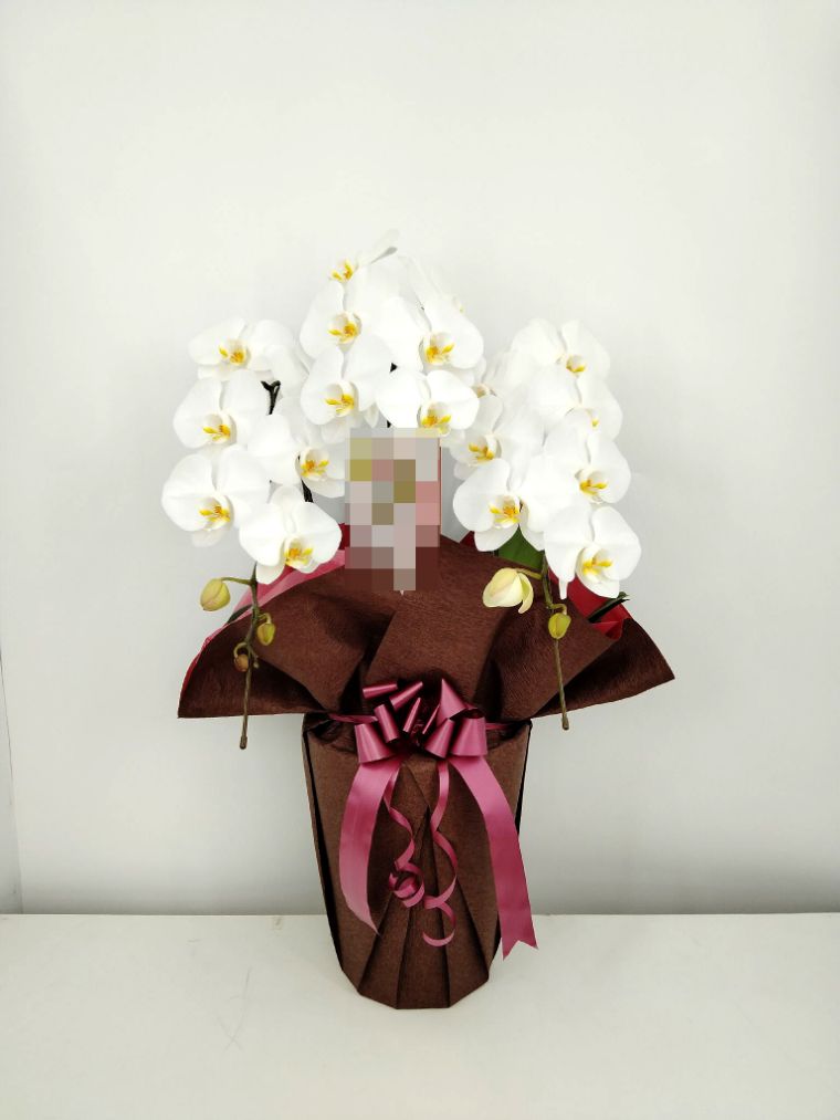 胡蝶蘭の実際にお届けした写真です。花秘書では発送前に写真をメールで送信致しますので安心して大切な顧客や取引様へのギフトにご利用頂けます。