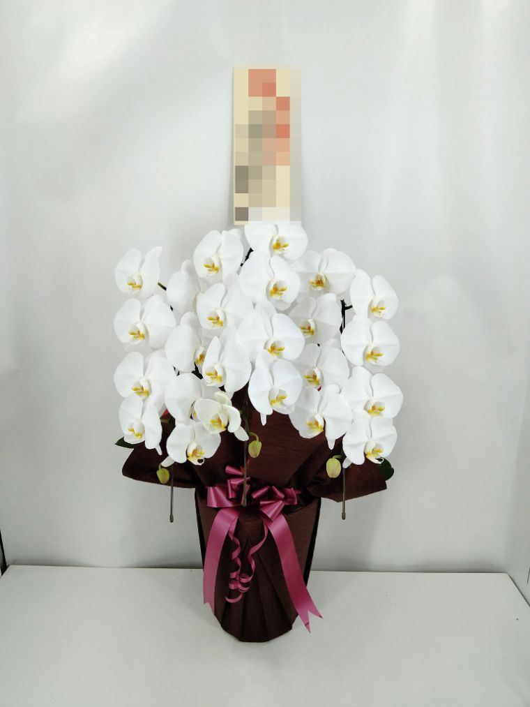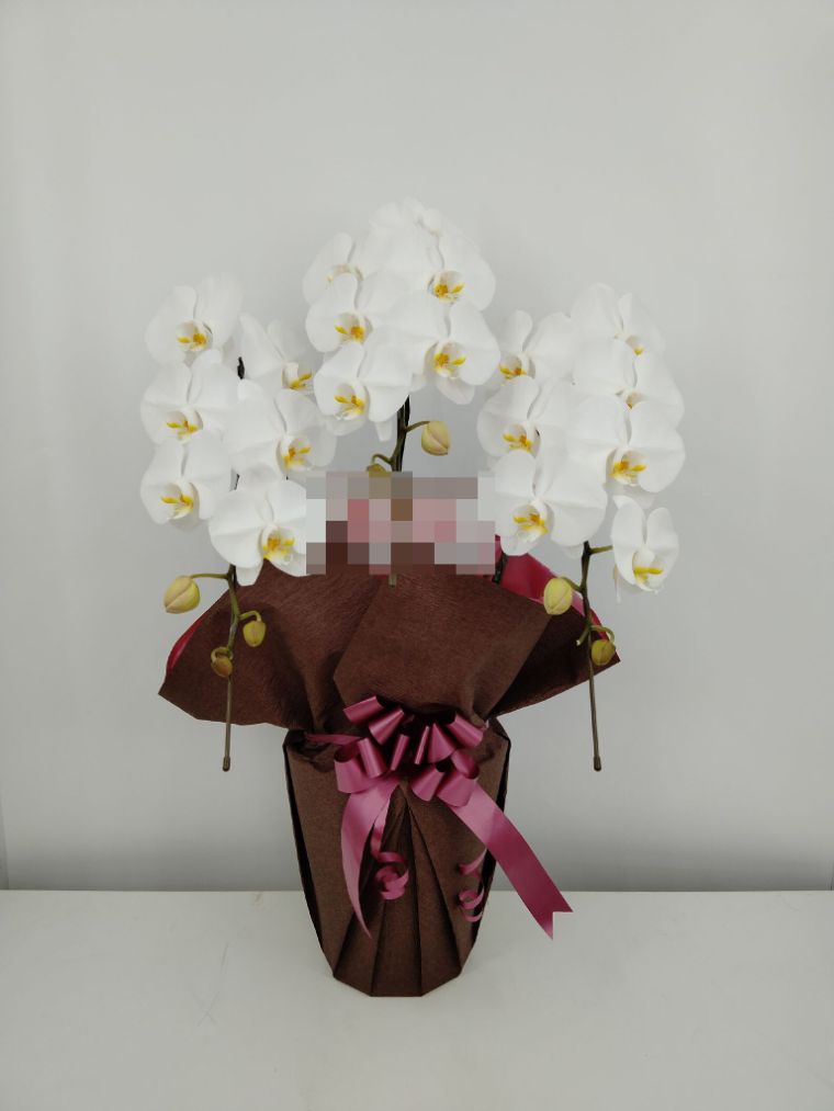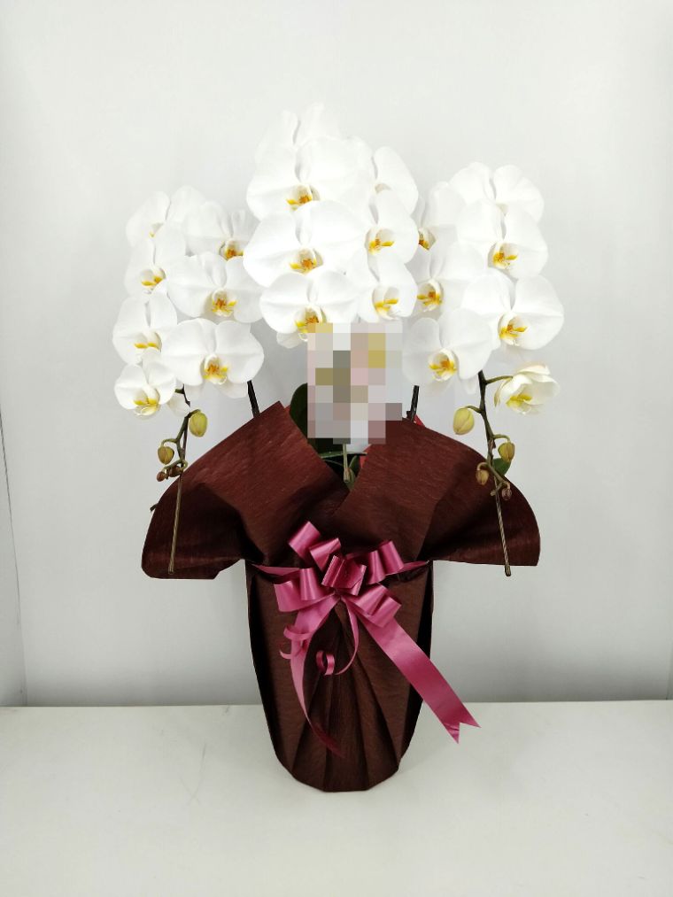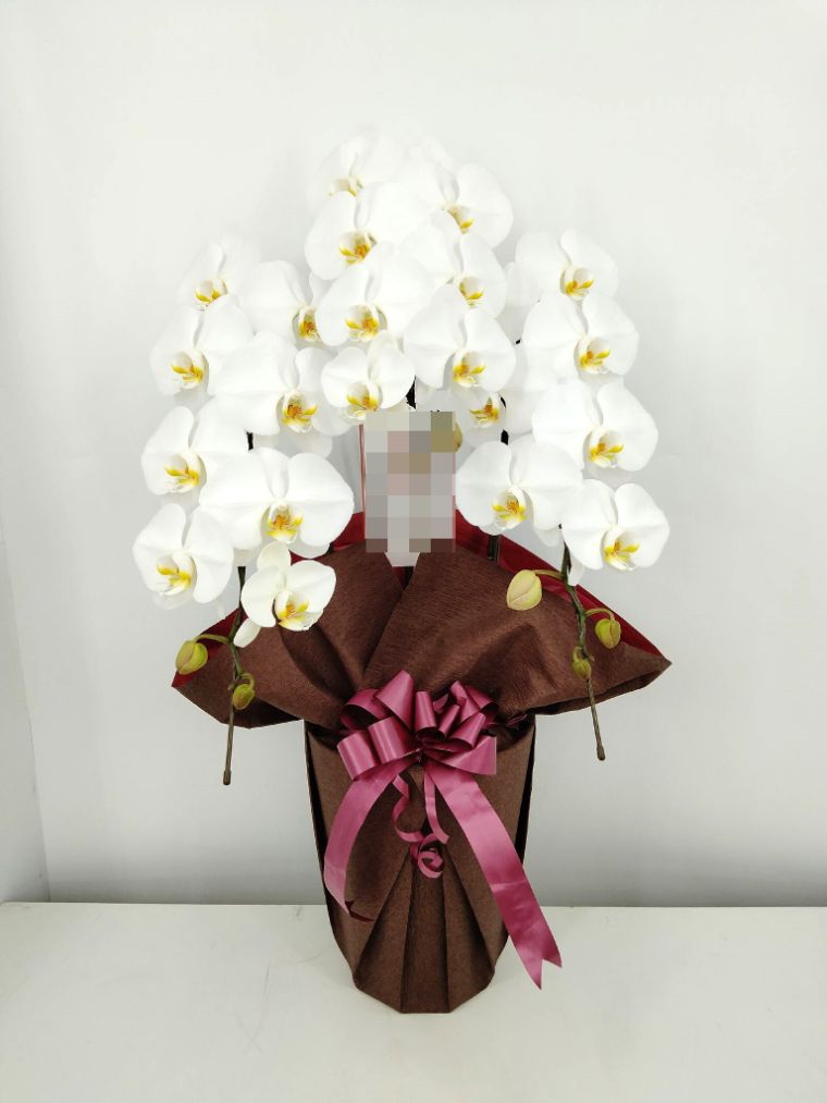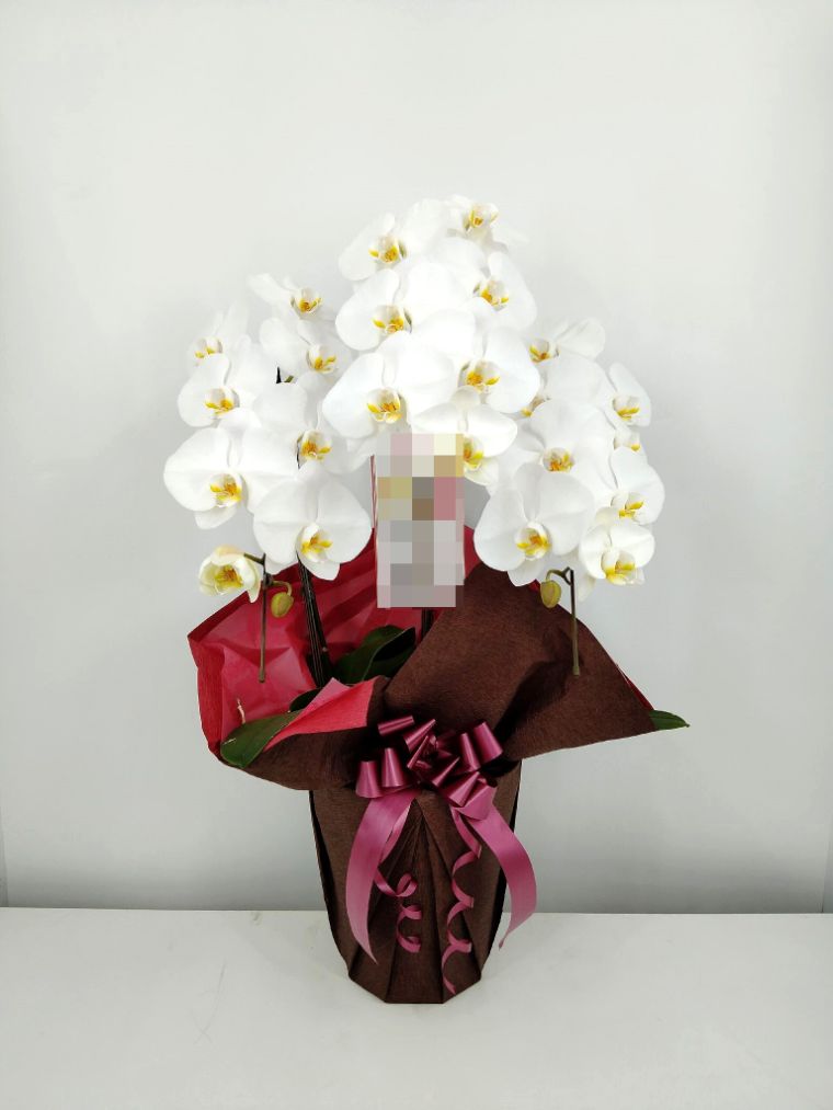 胡蝶蘭の実際にお届けした写真です。花秘書では発送前に写真をメールで送信致しますので安心して大切な顧客や取引様へのギフトにご利用頂けます。