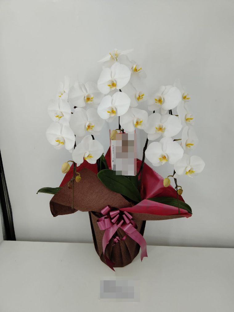 胡蝶蘭の実際にお届けした写真です。花秘書では発送前に写真をメールで送信致しますので安心して大切な顧客や取引様へのギフトにご利用頂けます。