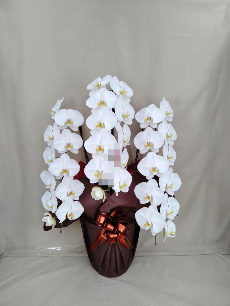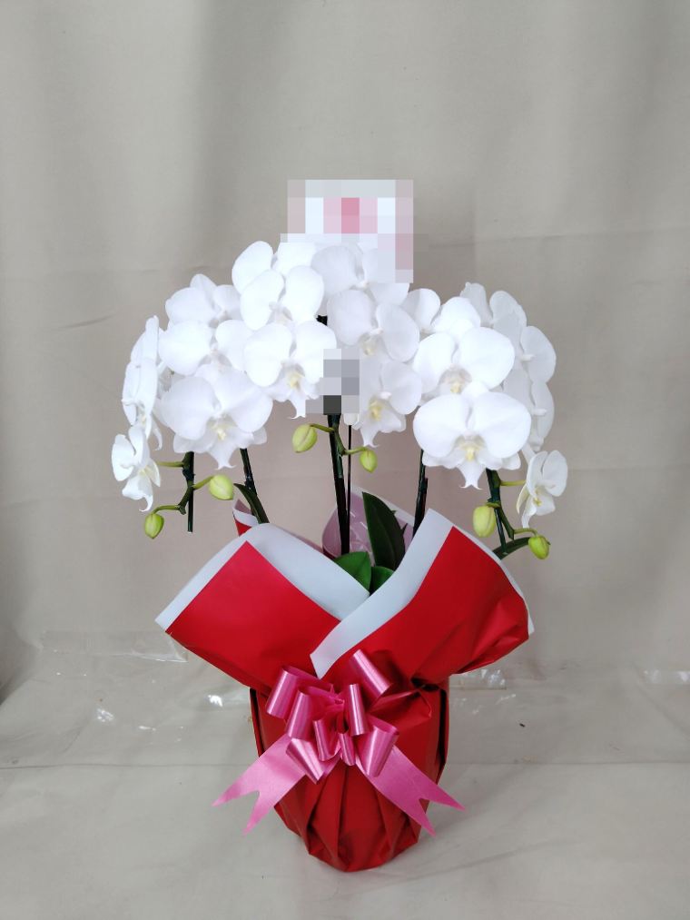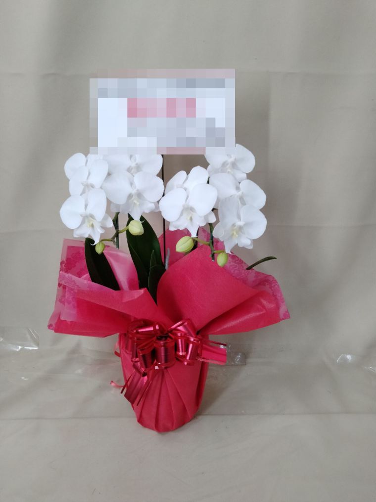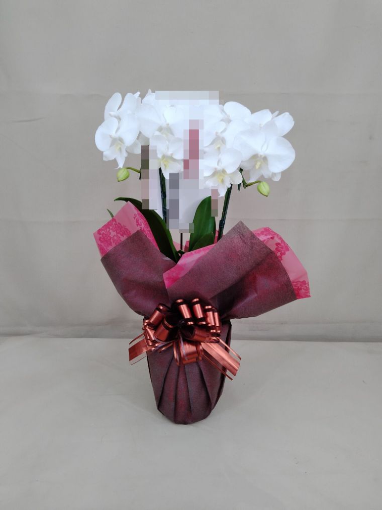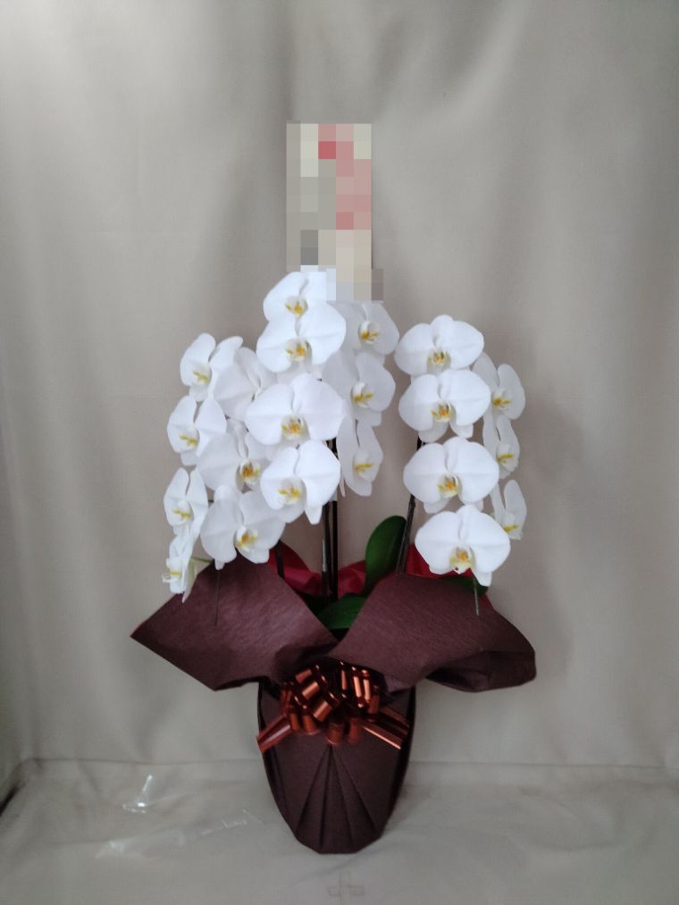 胡蝶蘭の実際にお届けした写真です。花秘書では発送前に写真をメールで送信致しますので安心して大切な顧客や取引様へのギフトにご利用頂けます。