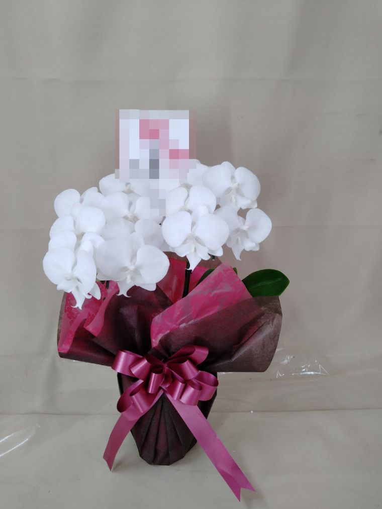 胡蝶蘭の実際にお届けした写真です。花秘書では発送前に写真をメールで送信致しますので安心して大切な顧客や取引様へのギフトにご利用頂けます。