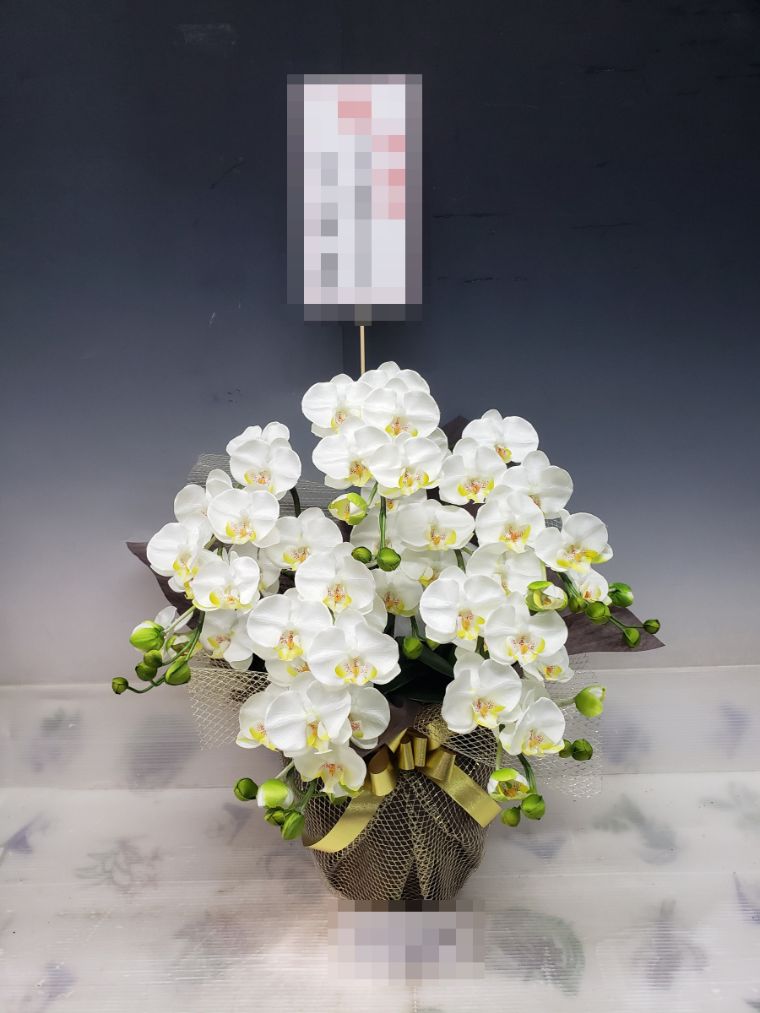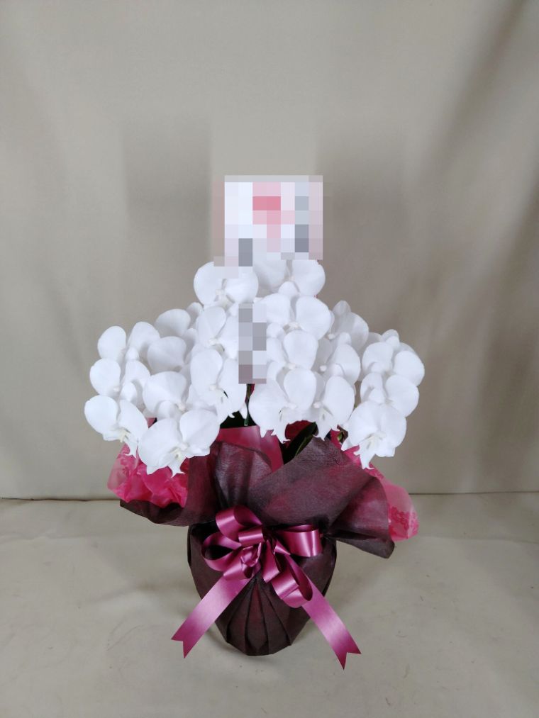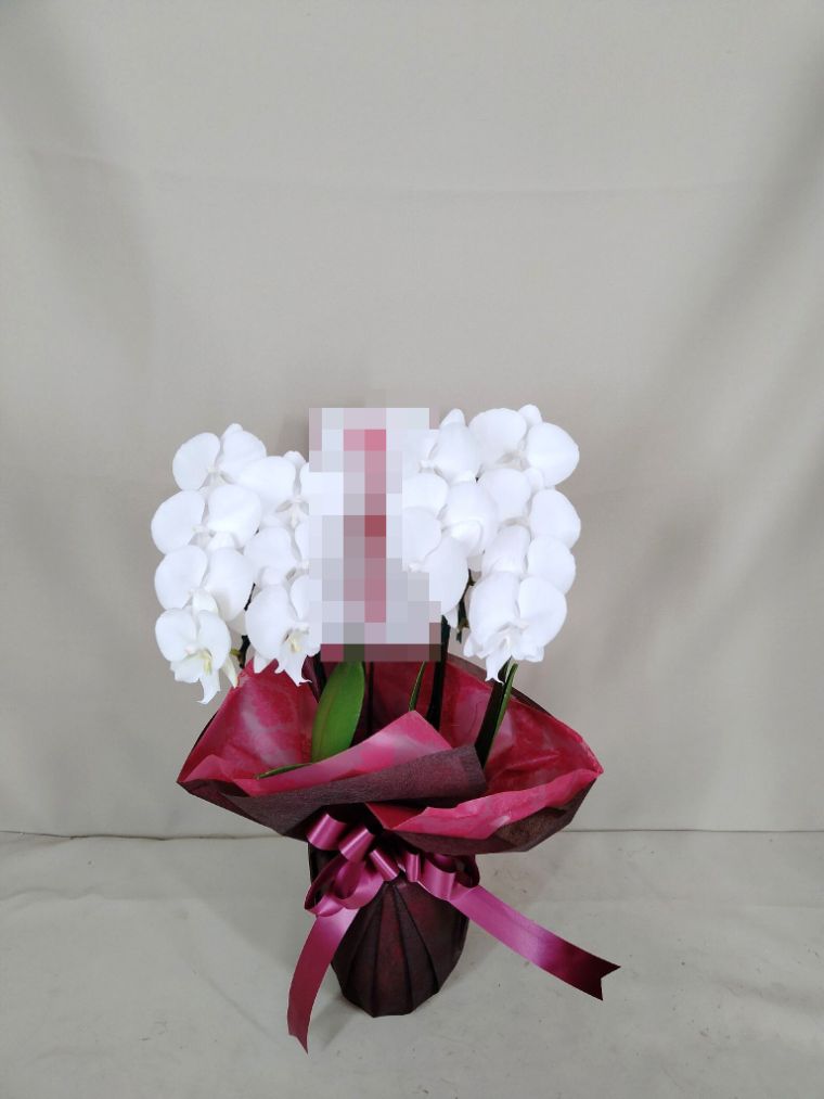 胡蝶蘭の実際にお届けした写真です。花秘書では発送前に写真をメールで送信致しますので安心して大切な顧客や取引様へのギフトにご利用頂けます。