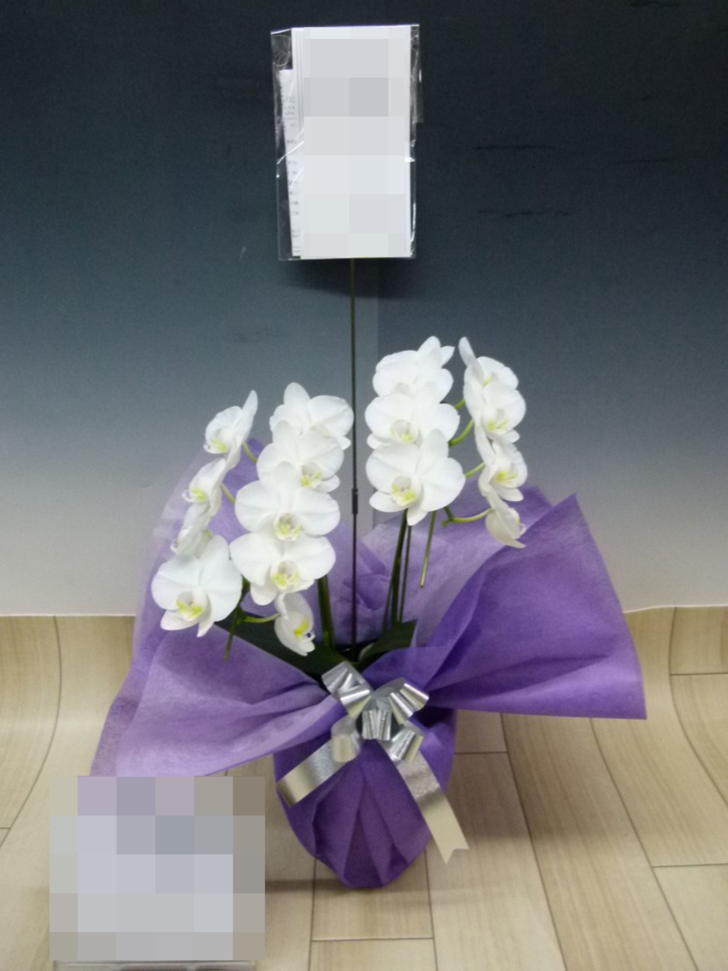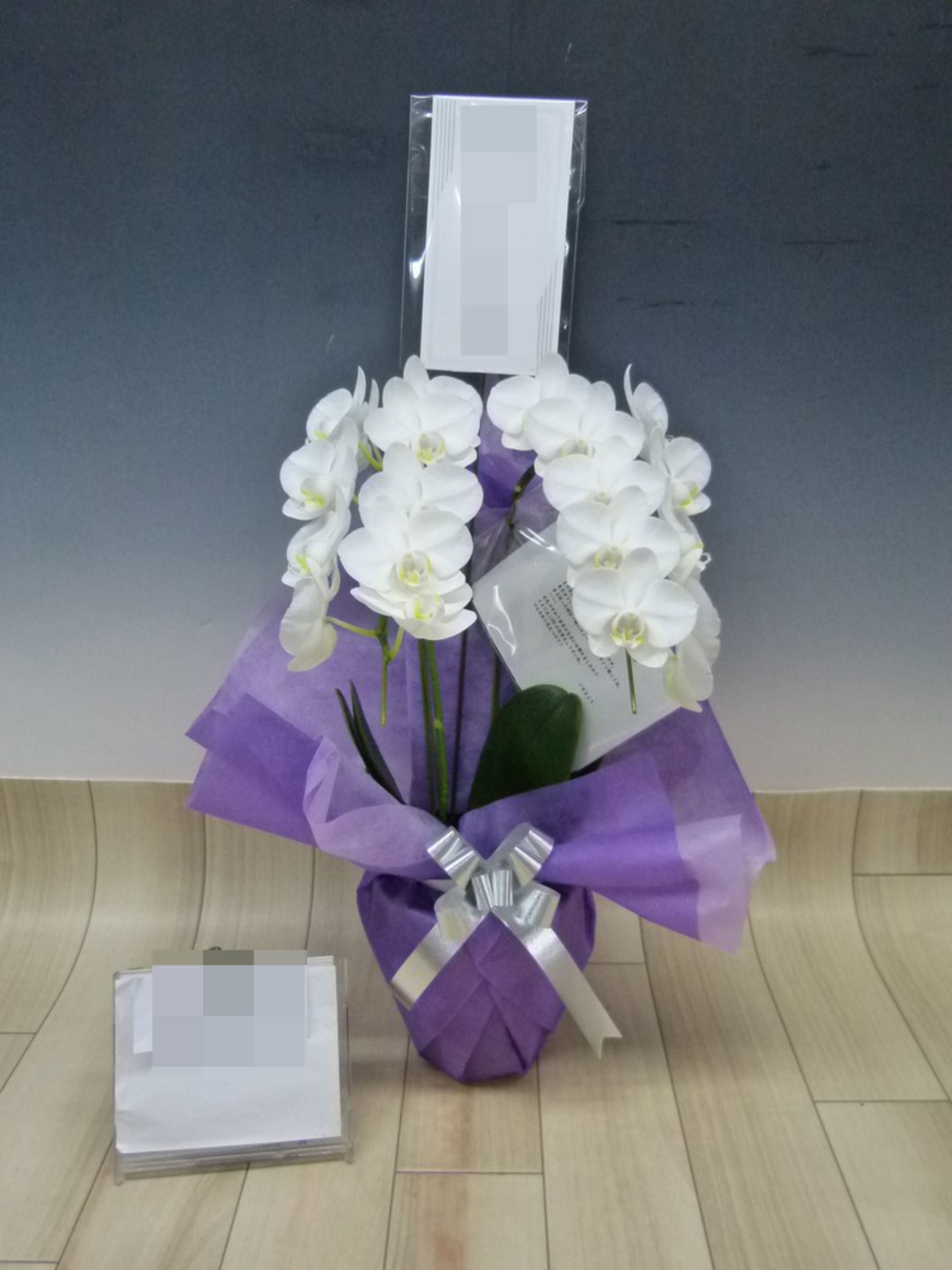 胡蝶蘭の実際にお届けした写真です。花秘書では発送前に写真をメールで送信致しますので安心して大切な顧客や取引様へのギフトにご利用頂けます。
