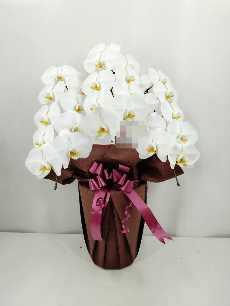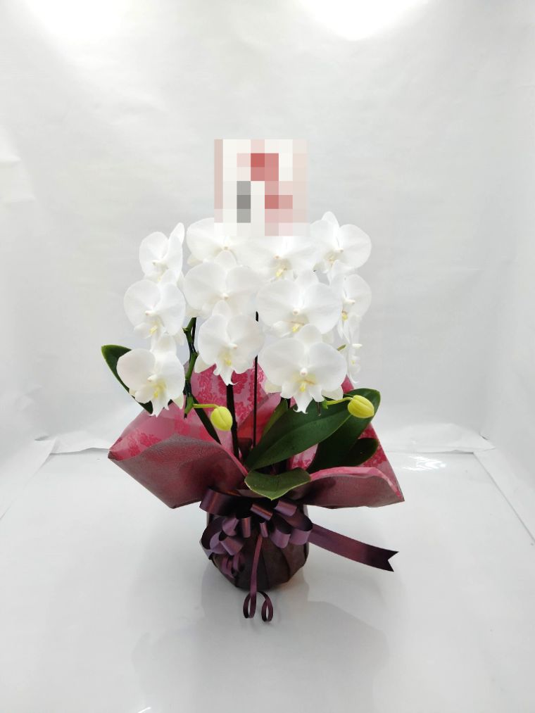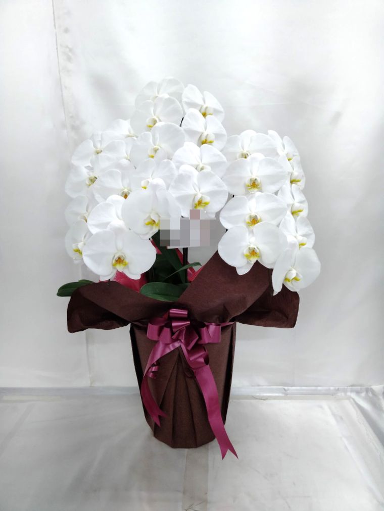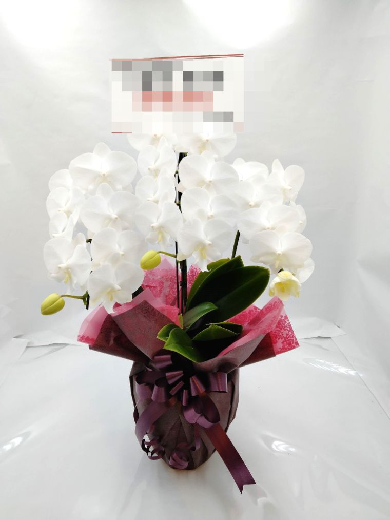 胡蝶蘭の実際にお届けした写真です。花秘書では発送前に写真をメールで送信致しますので安心して大切な顧客や取引様へのギフトにご利用頂けます。