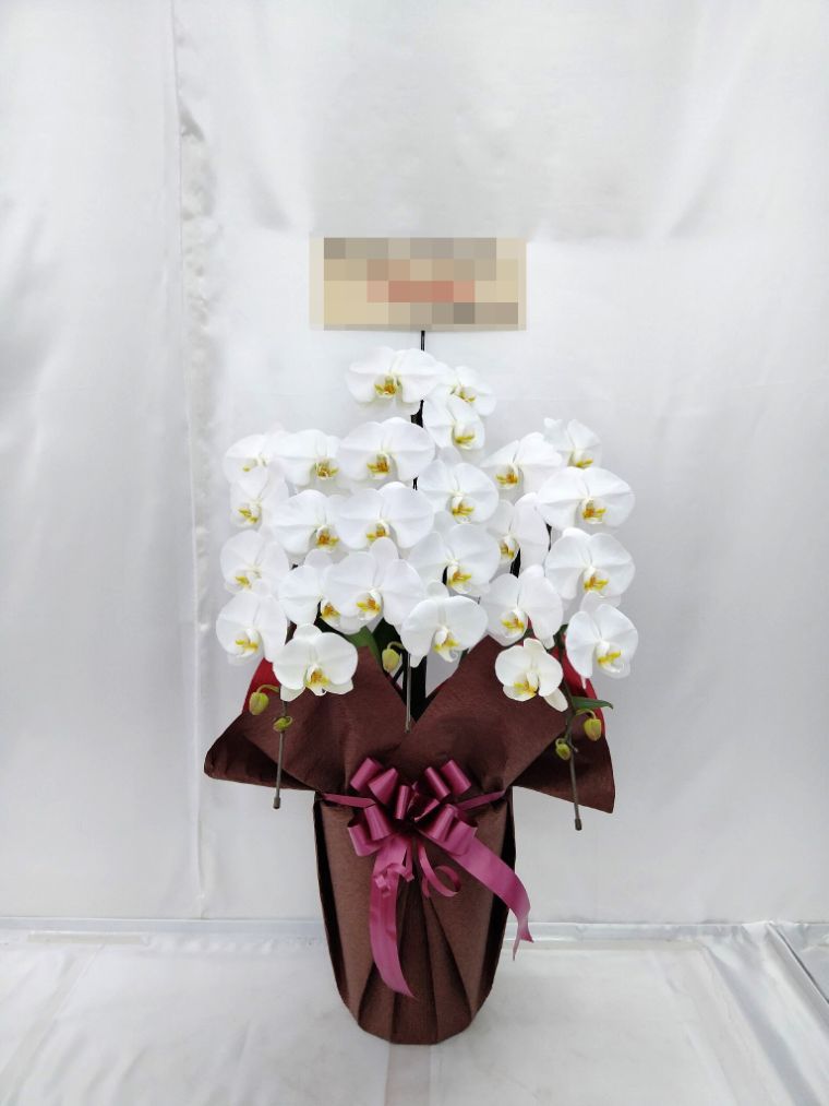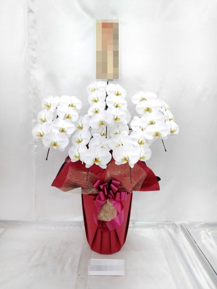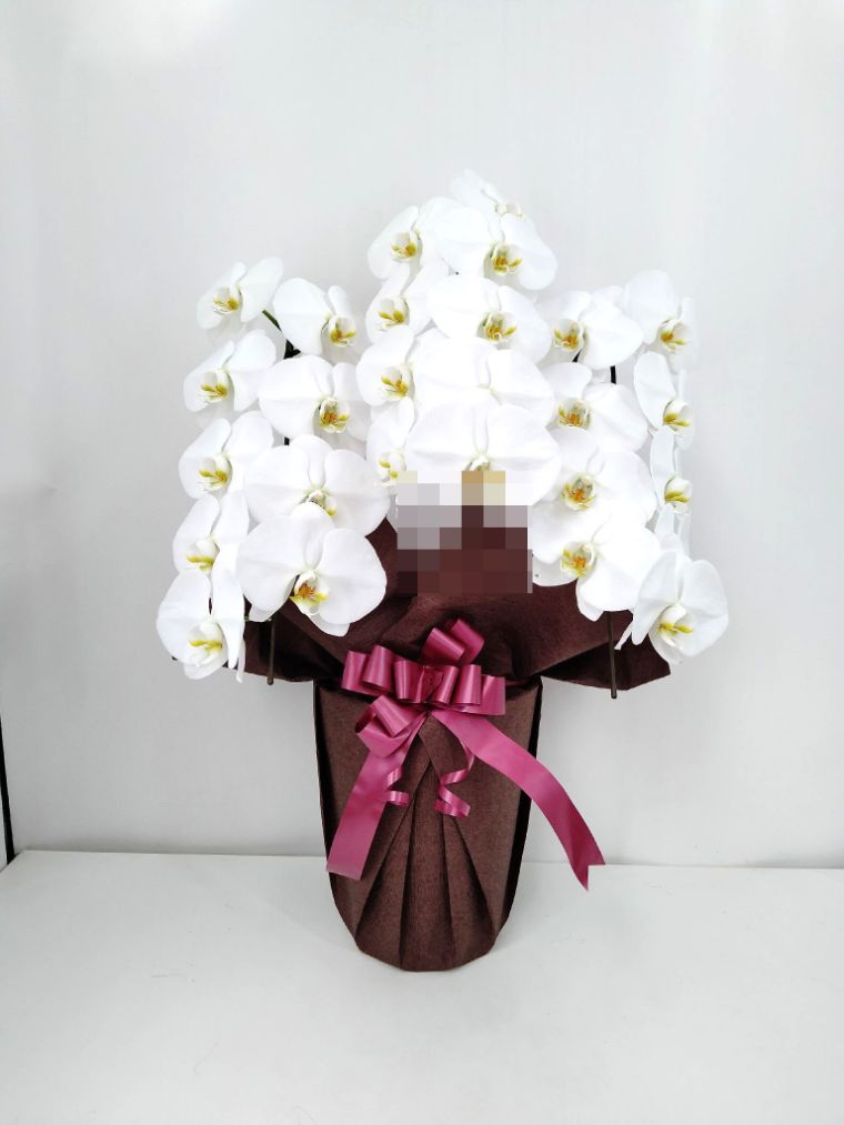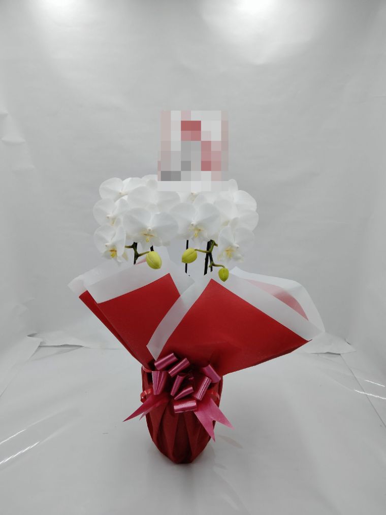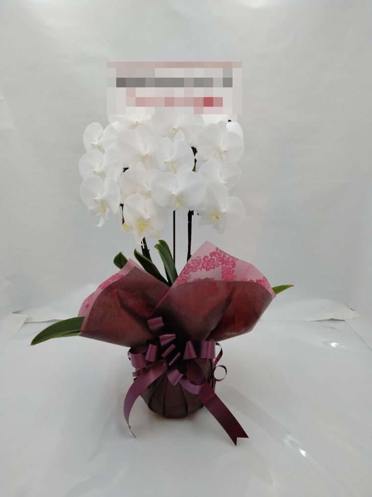 胡蝶蘭の実際にお届けした写真です。花秘書では発送前に写真をメールで送信致しますので安心して大切な顧客や取引様へのギフトにご利用頂けます。