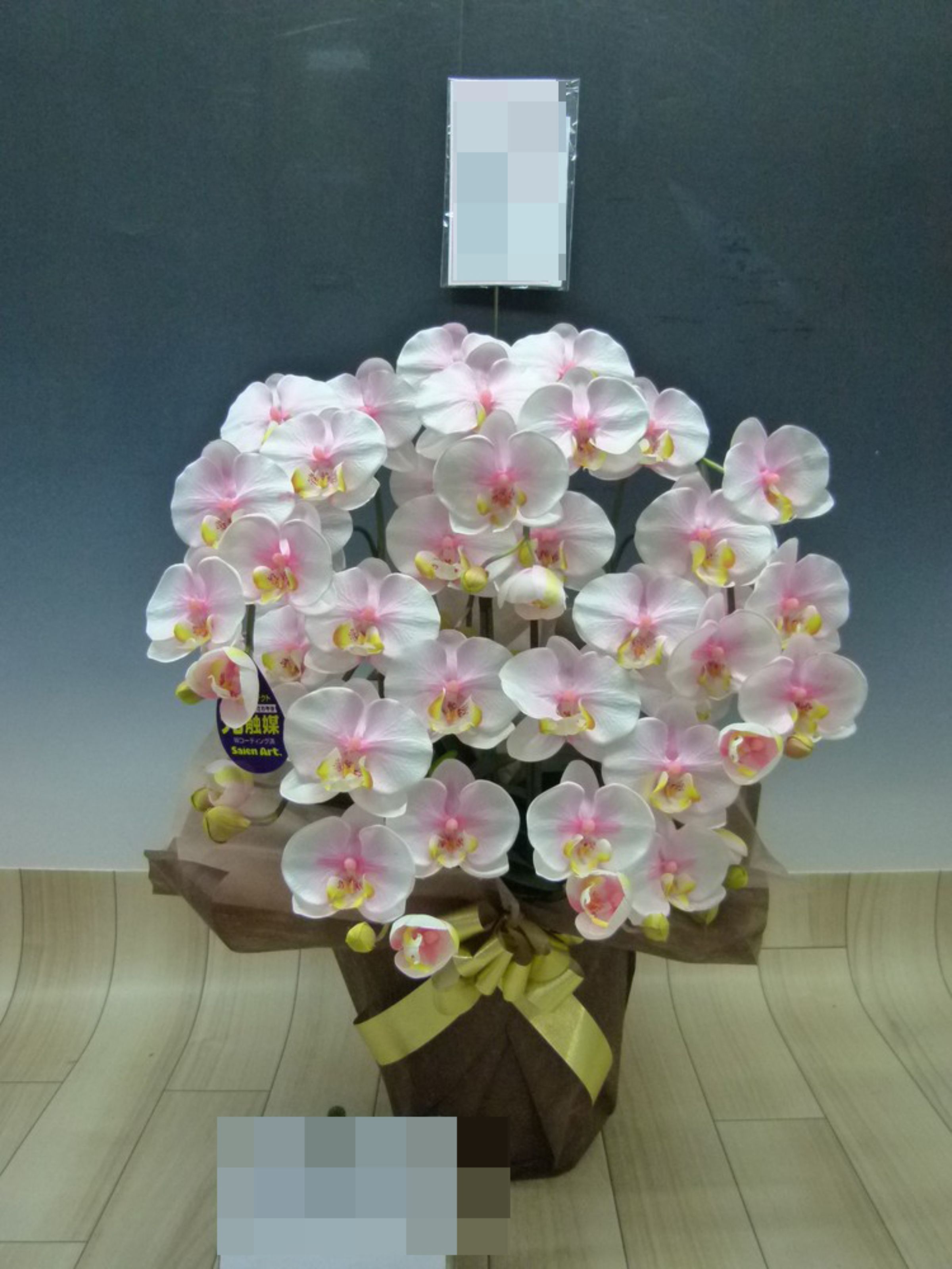 胡蝶蘭の実際にお届けした写真です。花秘書では発送前に写真をメールで送信致しますので安心して大切な顧客や取引様へのギフトにご利用頂けます。
