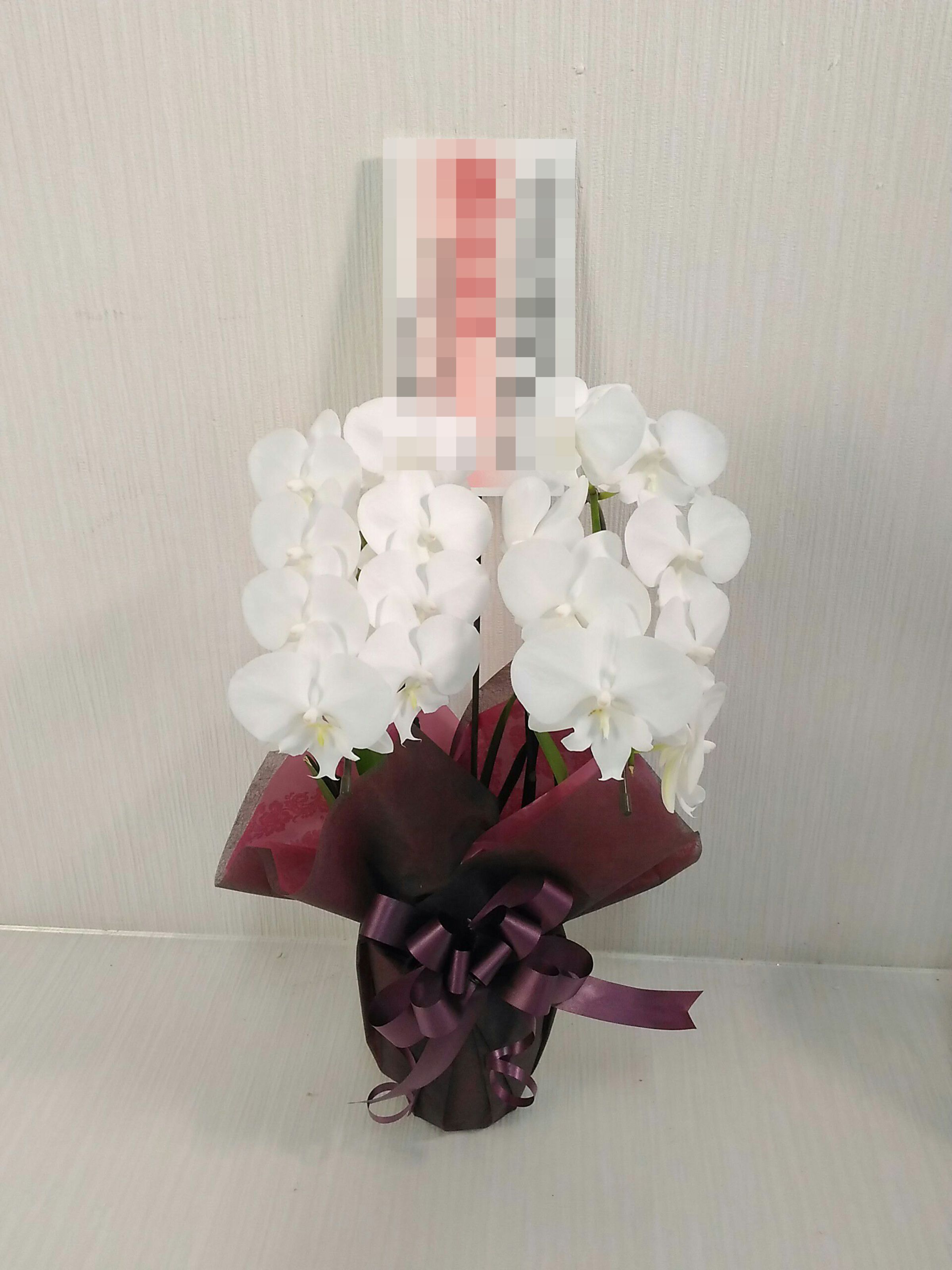 胡蝶蘭の実際にお届けした写真です。花秘書では発送前に写真をメールで送信致しますので安心して大切な顧客や取引様へのギフトにご利用頂けます。