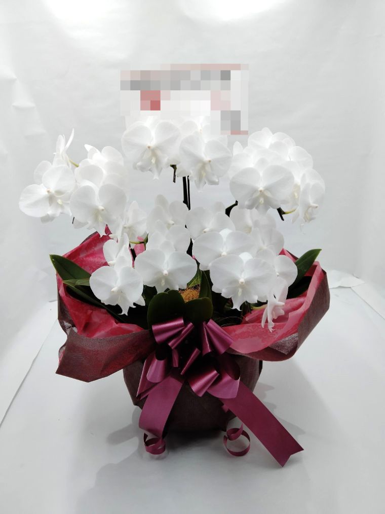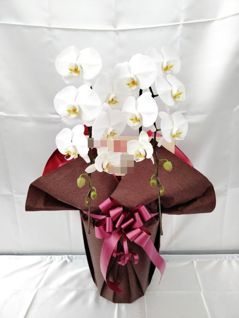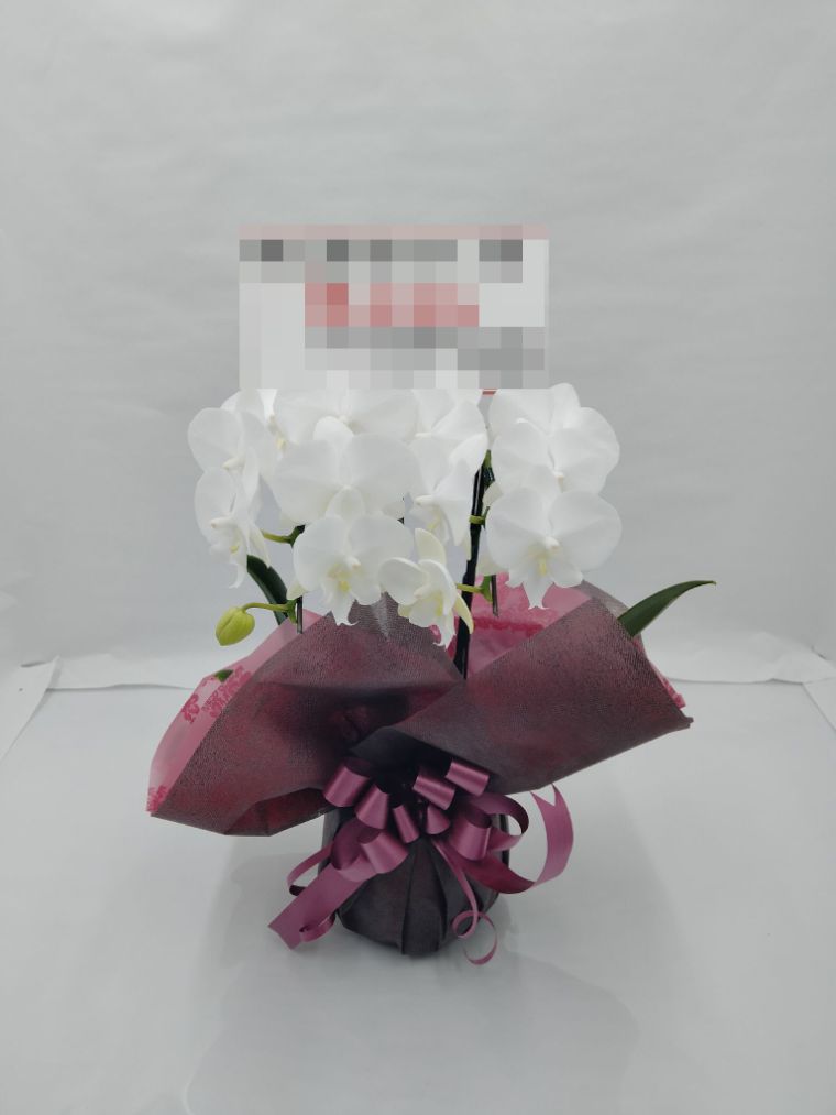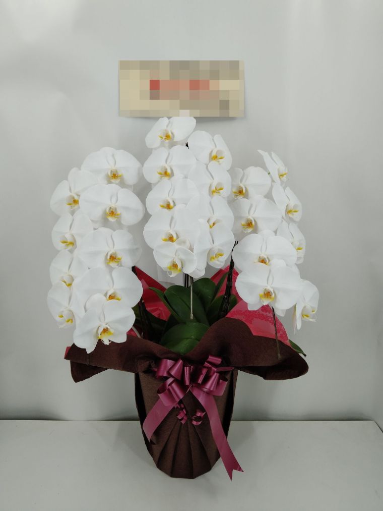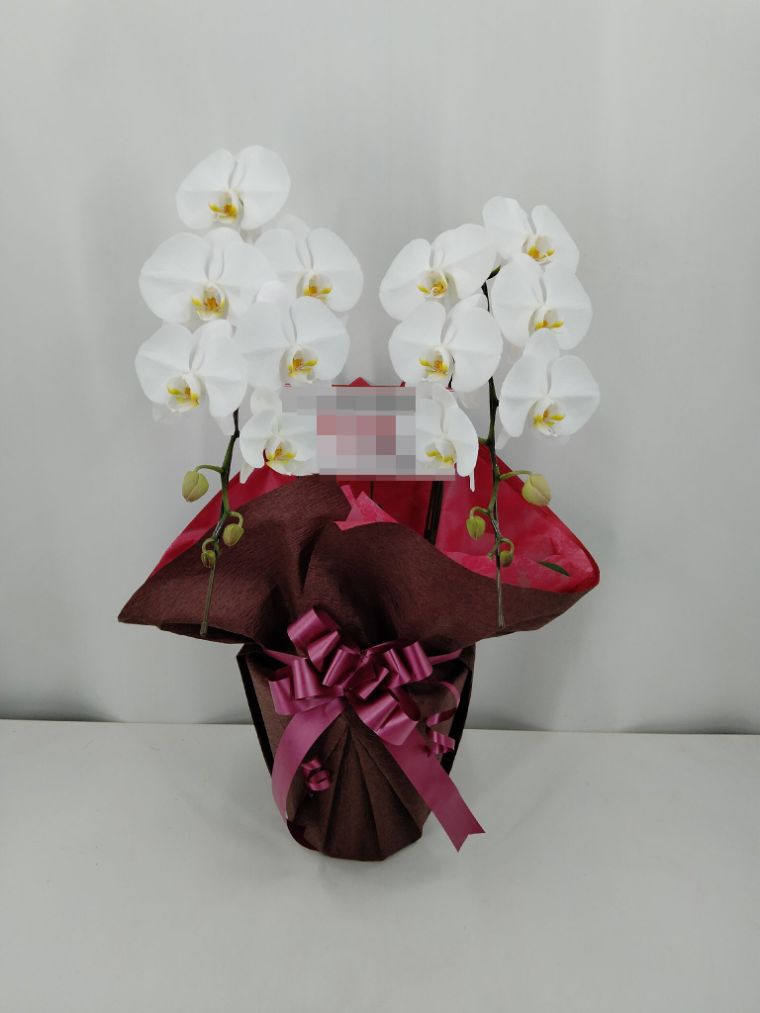 胡蝶蘭の実際にお届けした写真です。花秘書では発送前に写真をメールで送信致しますので安心して大切な顧客や取引様へのギフトにご利用頂けます。