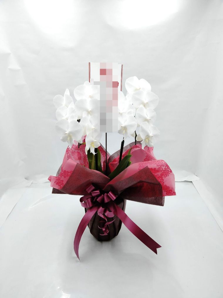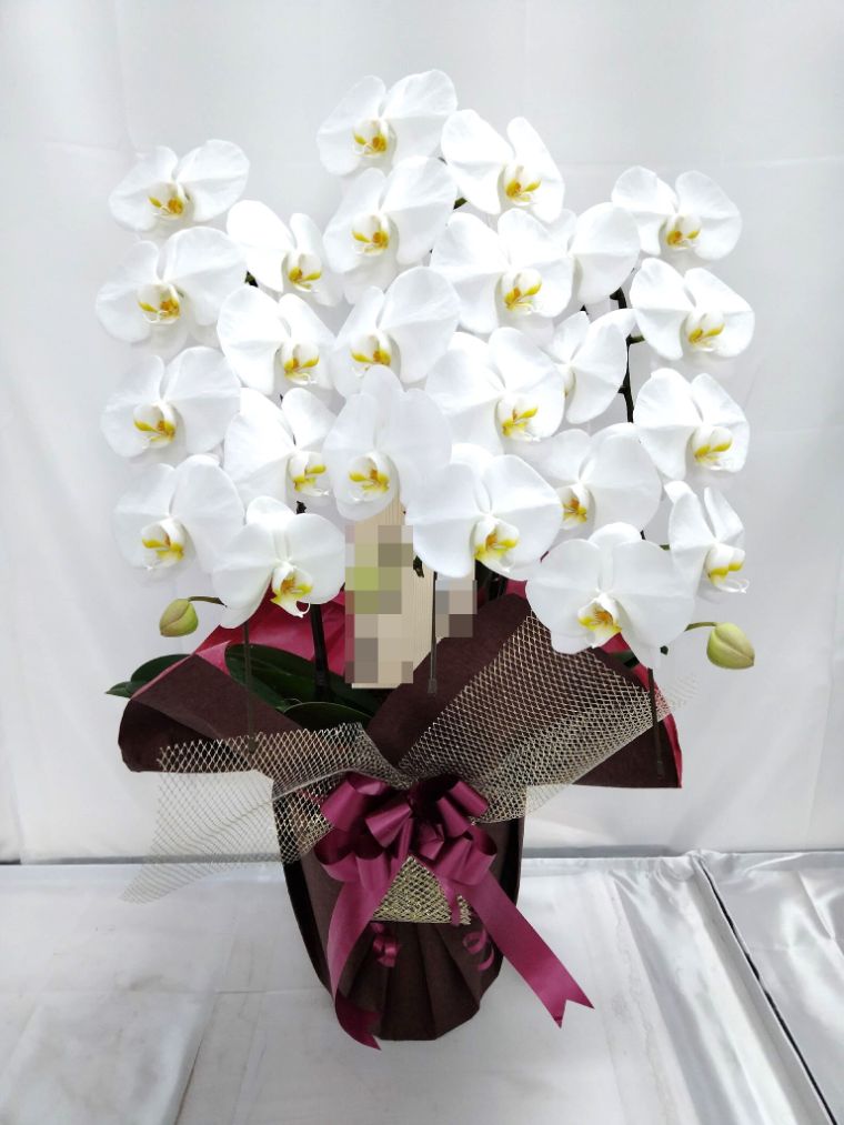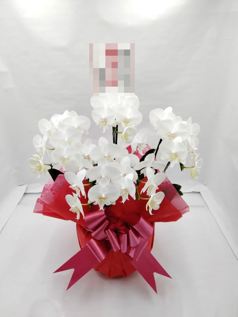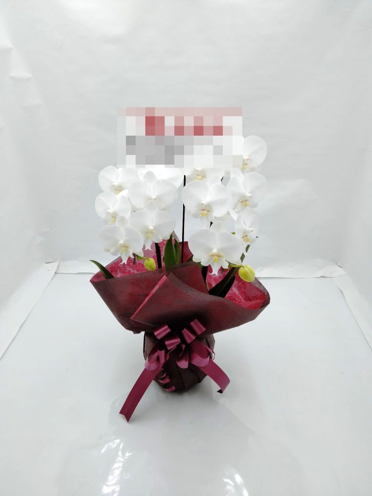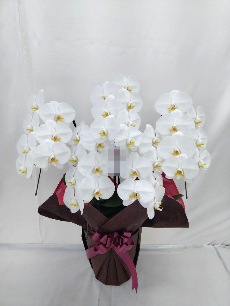 胡蝶蘭の実際にお届けした写真です。花秘書では発送前に写真をメールで送信致しますので安心して大切な顧客や取引様へのギフトにご利用頂けます。