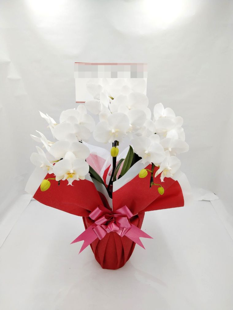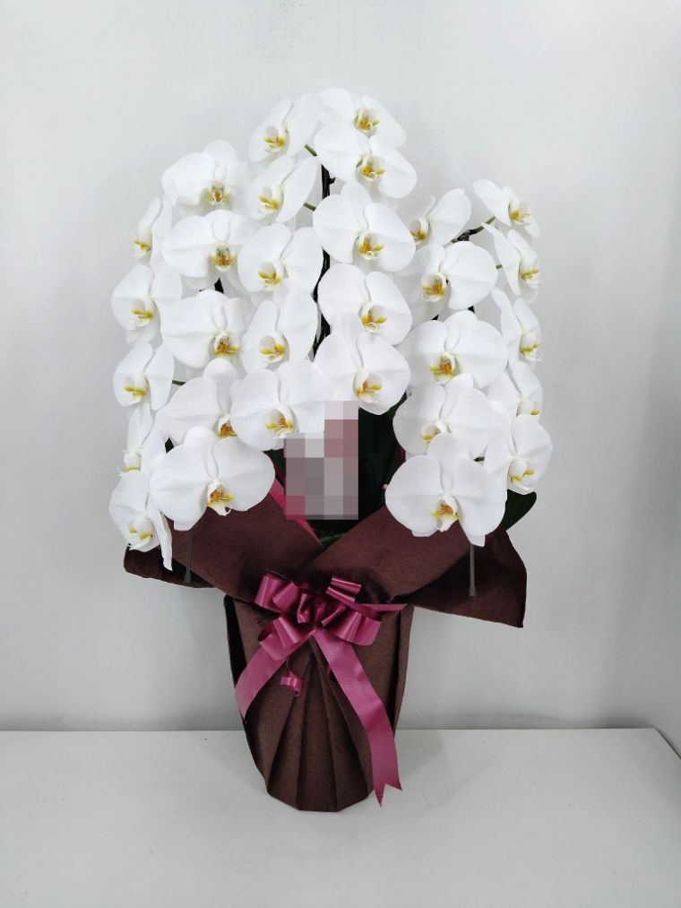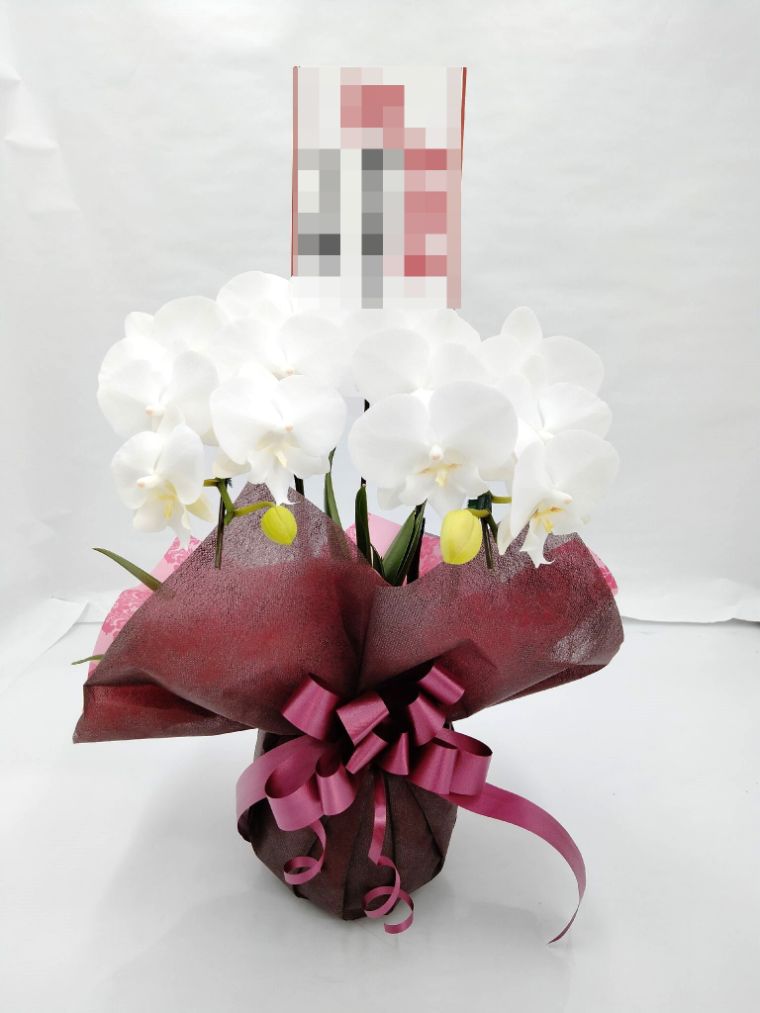 胡蝶蘭の実際にお届けした写真です。花秘書では発送前に写真をメールで送信致しますので安心して大切な顧客や取引様へのギフトにご利用頂けます。