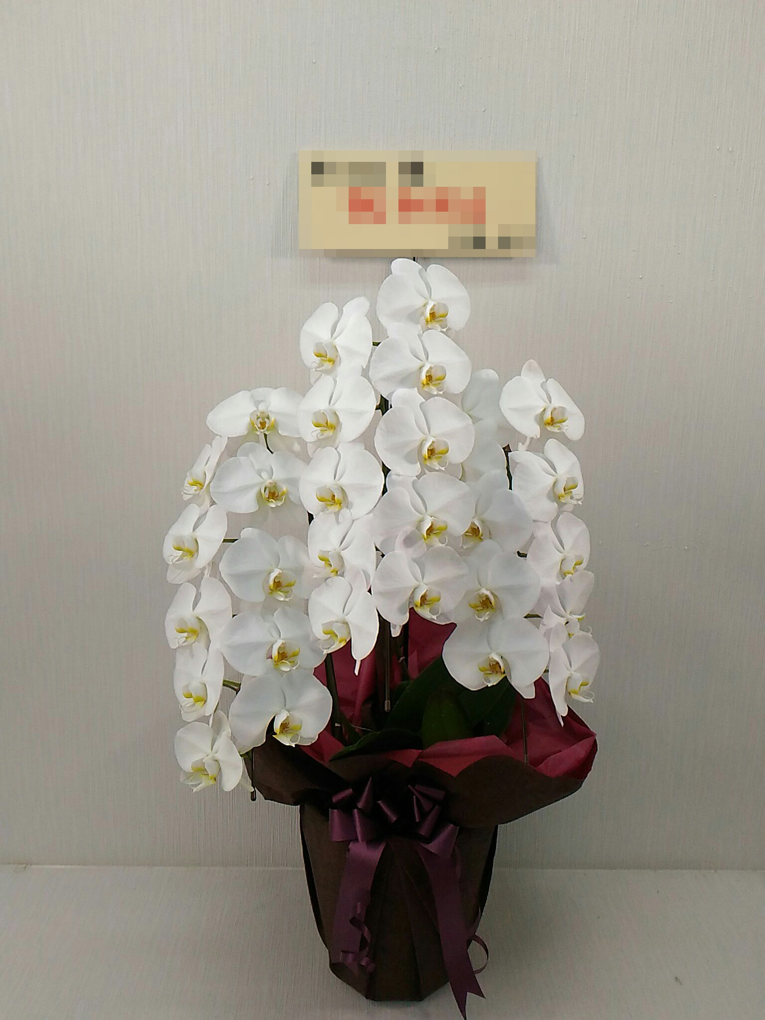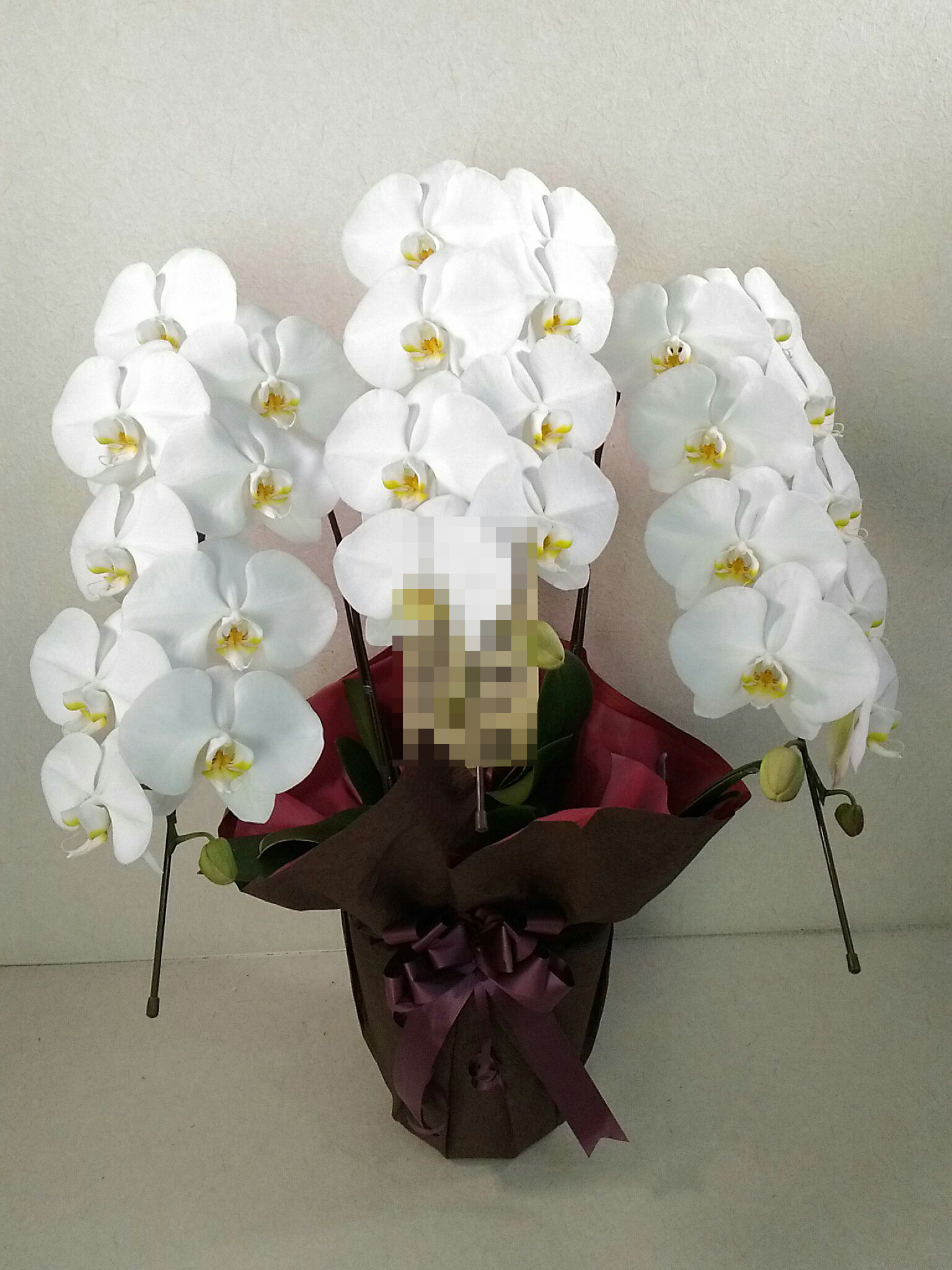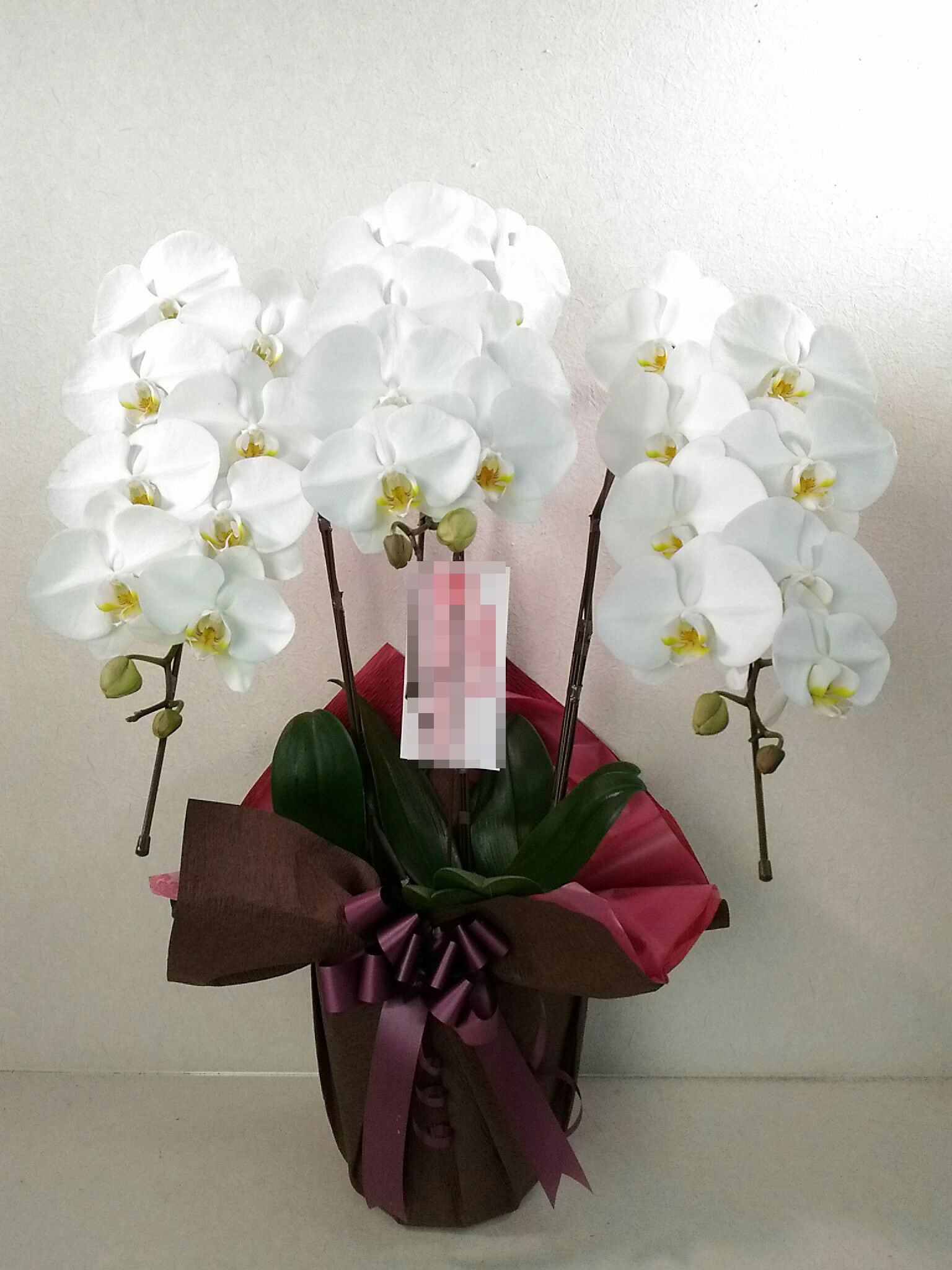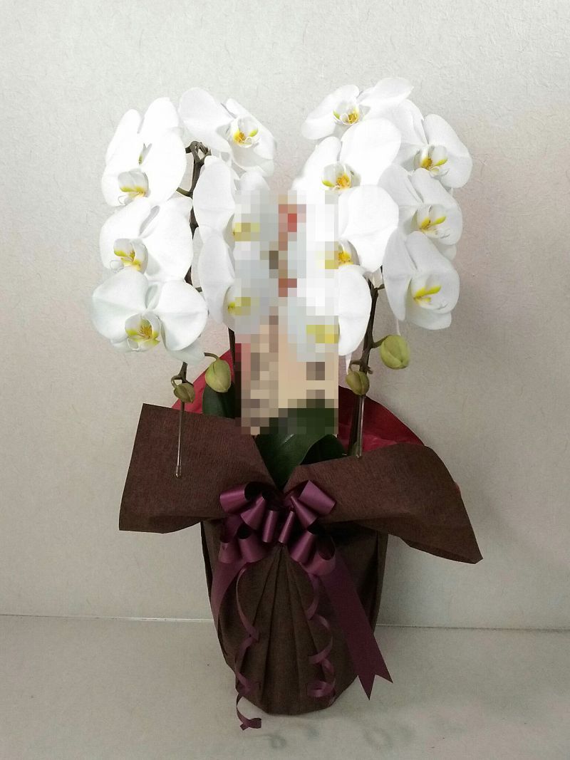 胡蝶蘭の実際にお届けした写真です。花秘書では発送前に写真をメールで送信致しますので安心して大切な顧客や取引様へのギフトにご利用頂けます。