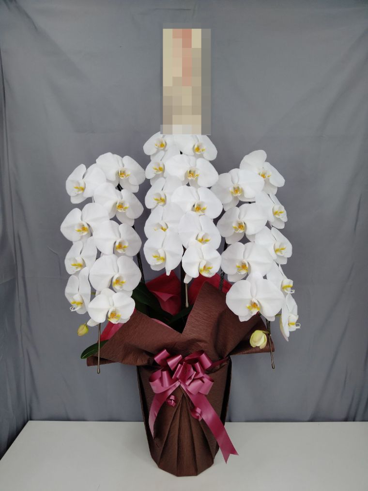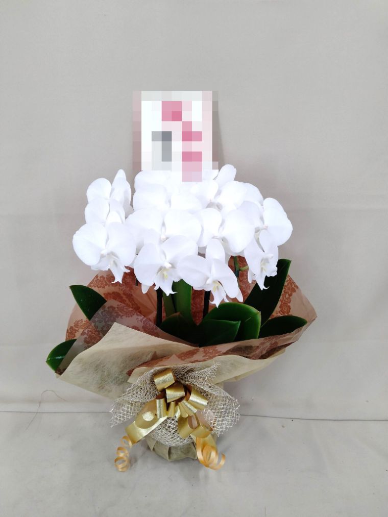 胡蝶蘭の実際にお届けした写真です。花秘書では発送前に写真をメールで送信致しますので安心して大切な顧客や取引様へのギフトにご利用頂けます。