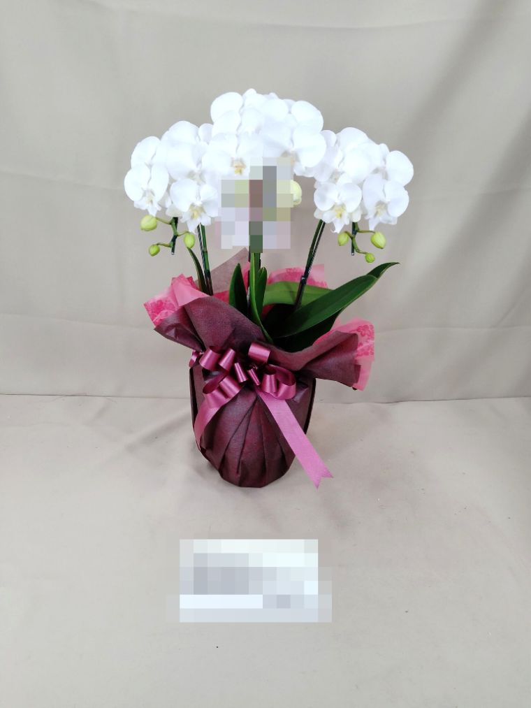 胡蝶蘭の実際にお届けした写真です。花秘書では発送前に写真をメールで送信致しますので安心して大切な顧客や取引様へのギフトにご利用頂けます。