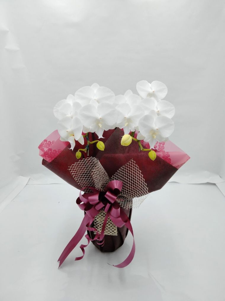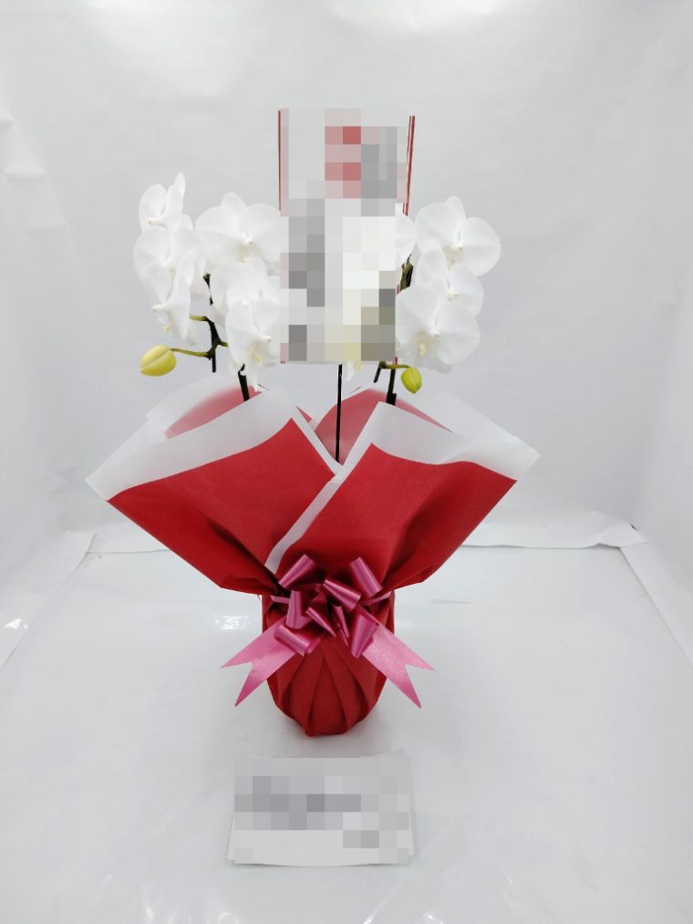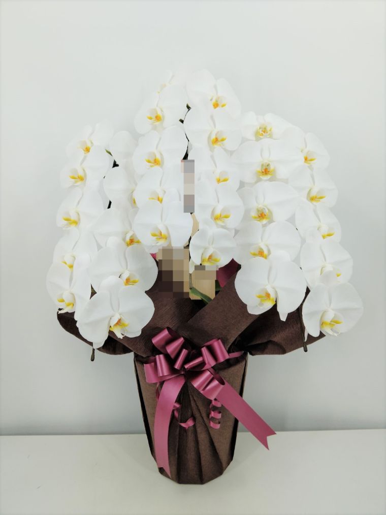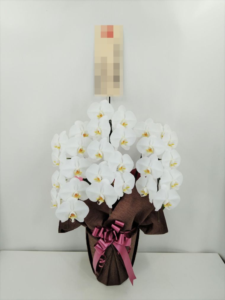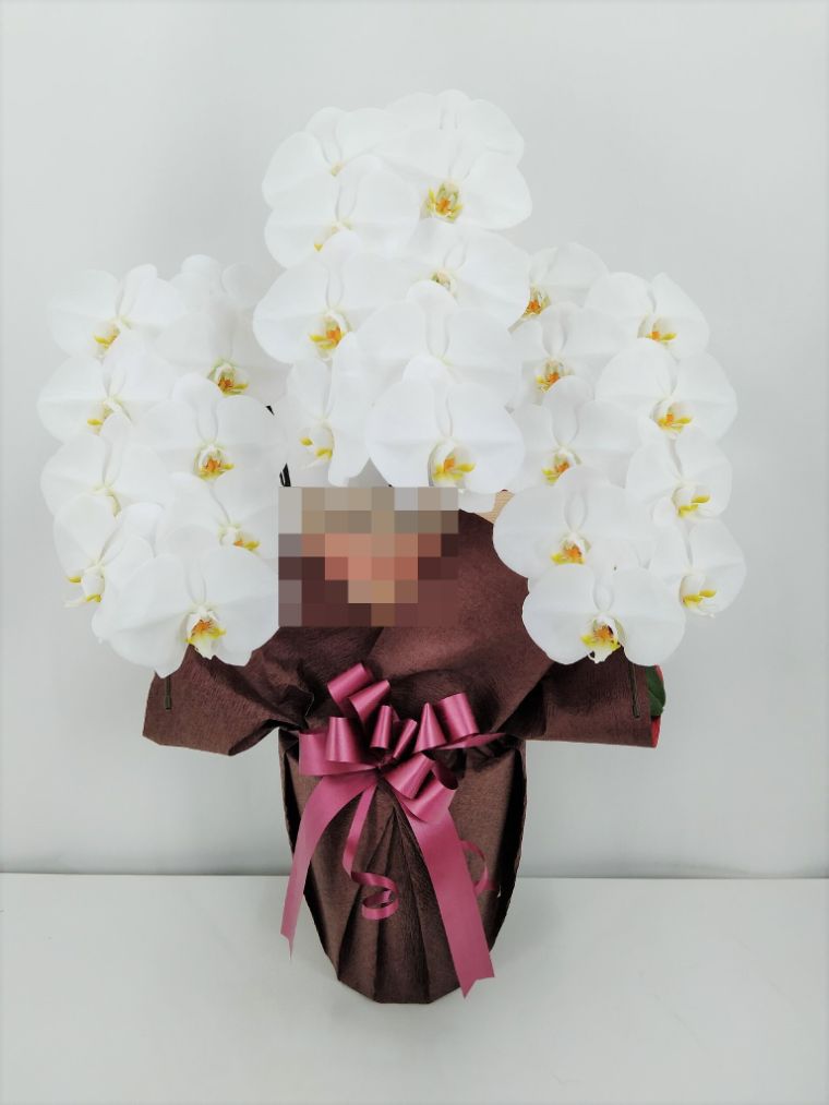 胡蝶蘭の実際にお届けした写真です。花秘書では発送前に写真をメールで送信致しますので安心して大切な顧客や取引様へのギフトにご利用頂けます。