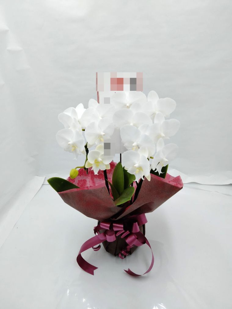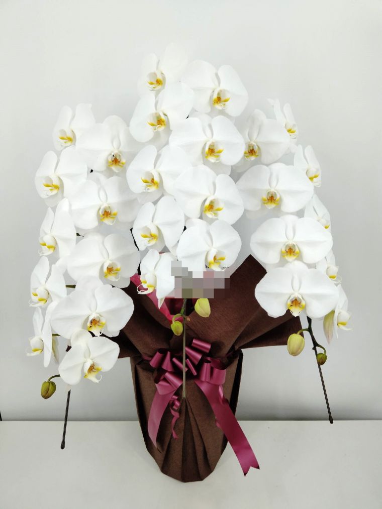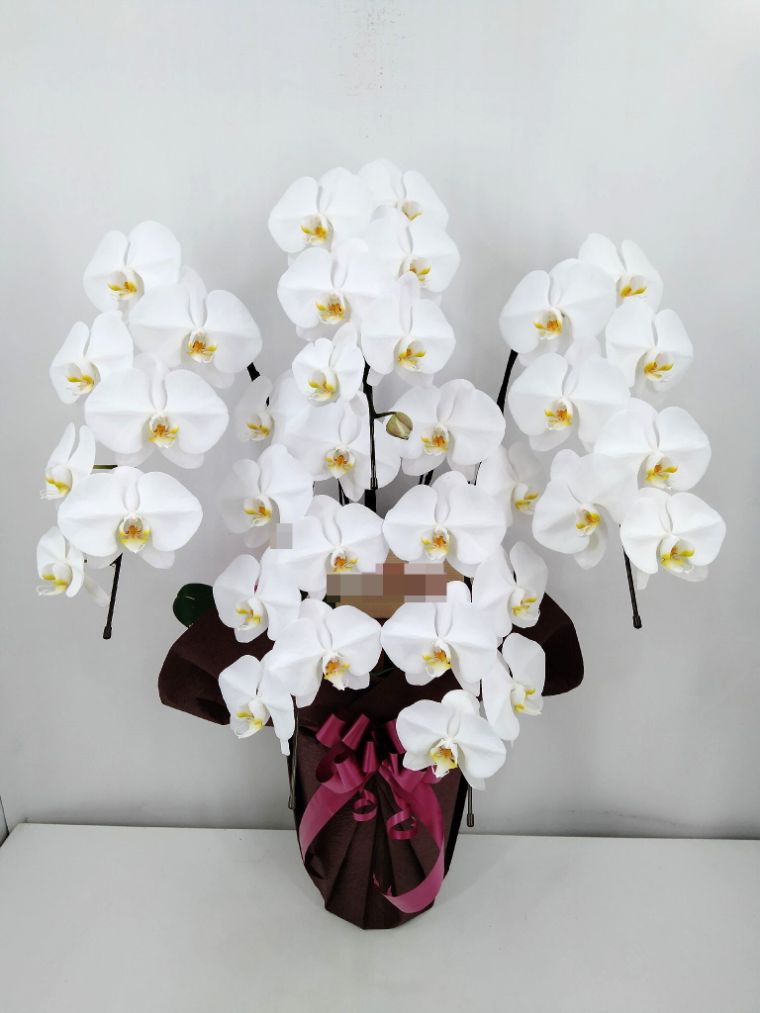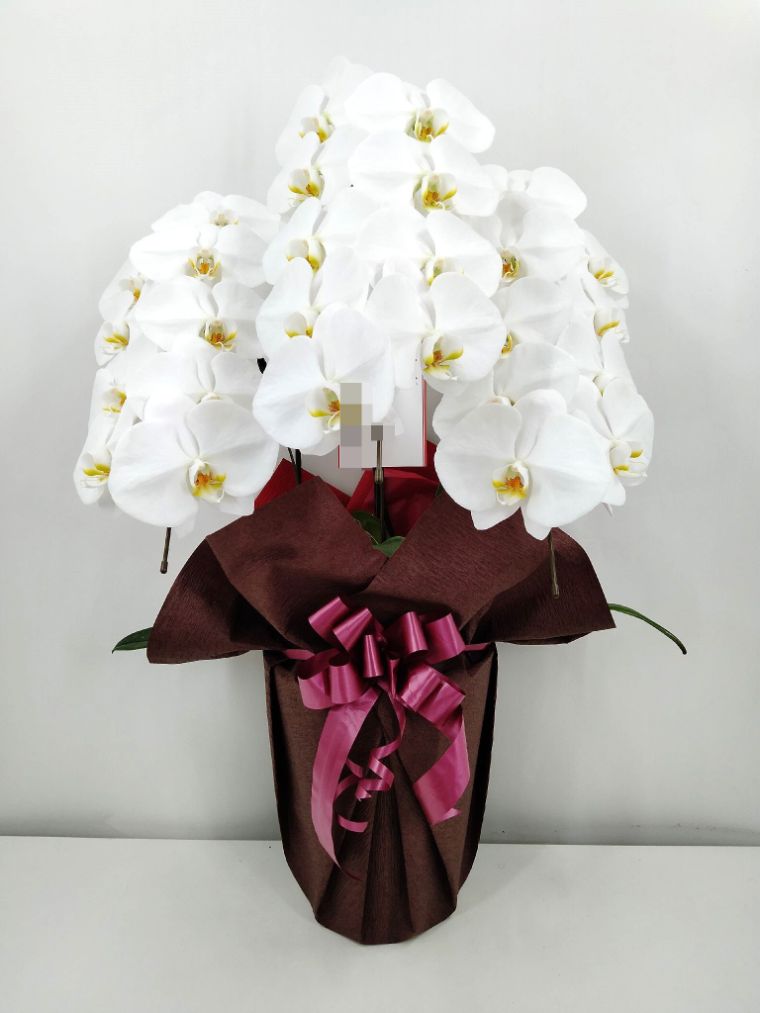 胡蝶蘭の実際にお届けした写真です。花秘書では発送前に写真をメールで送信致しますので安心して大切な顧客や取引様へのギフトにご利用頂けます。