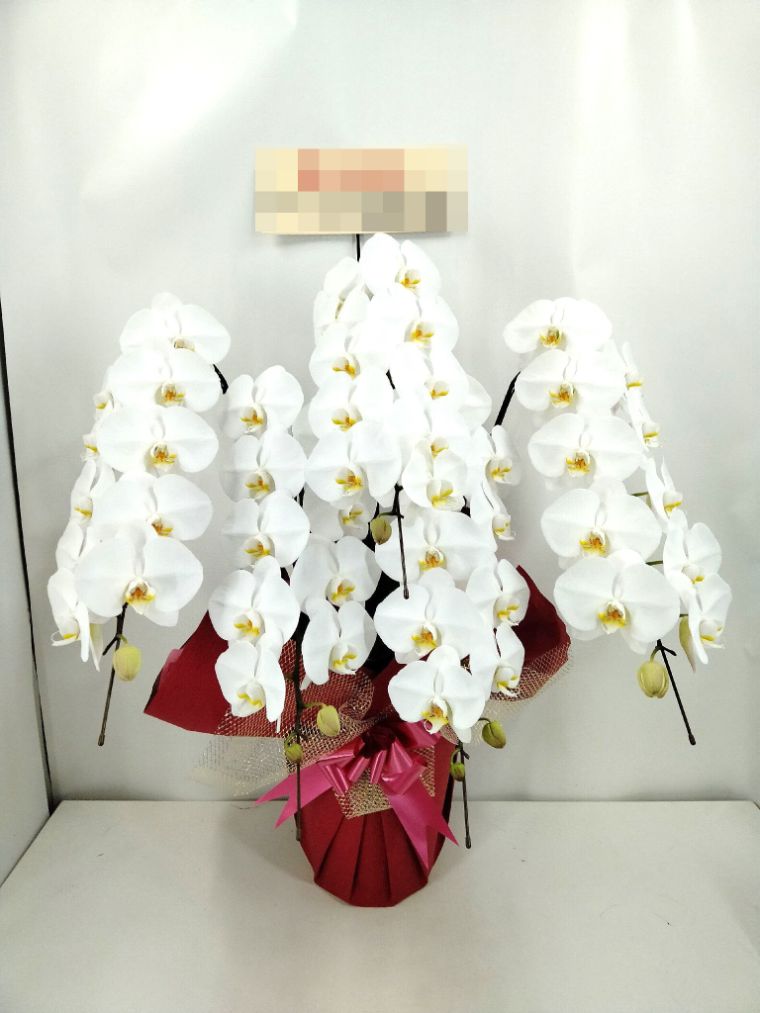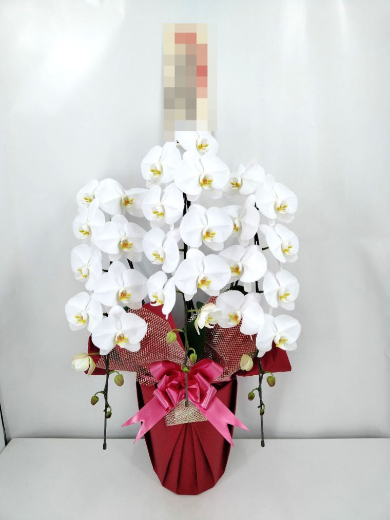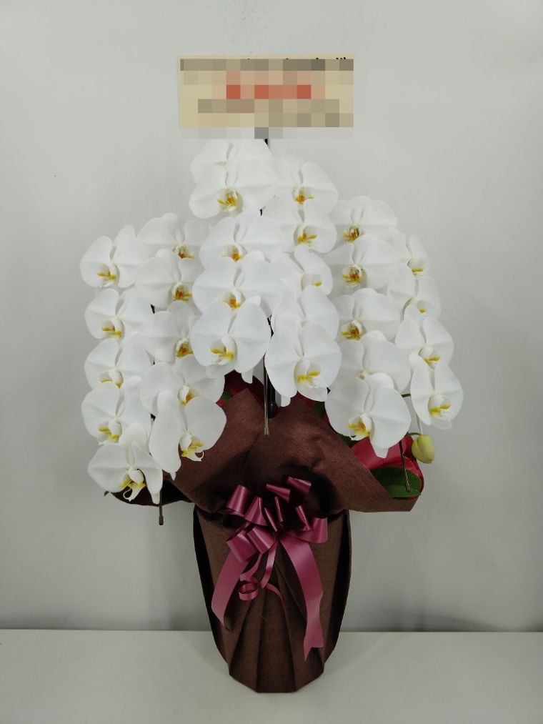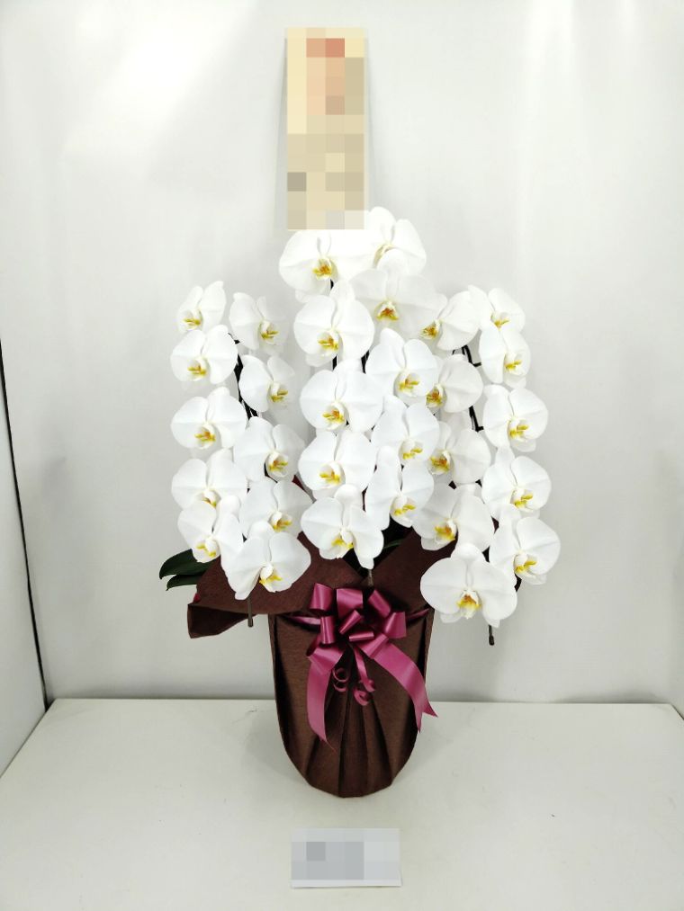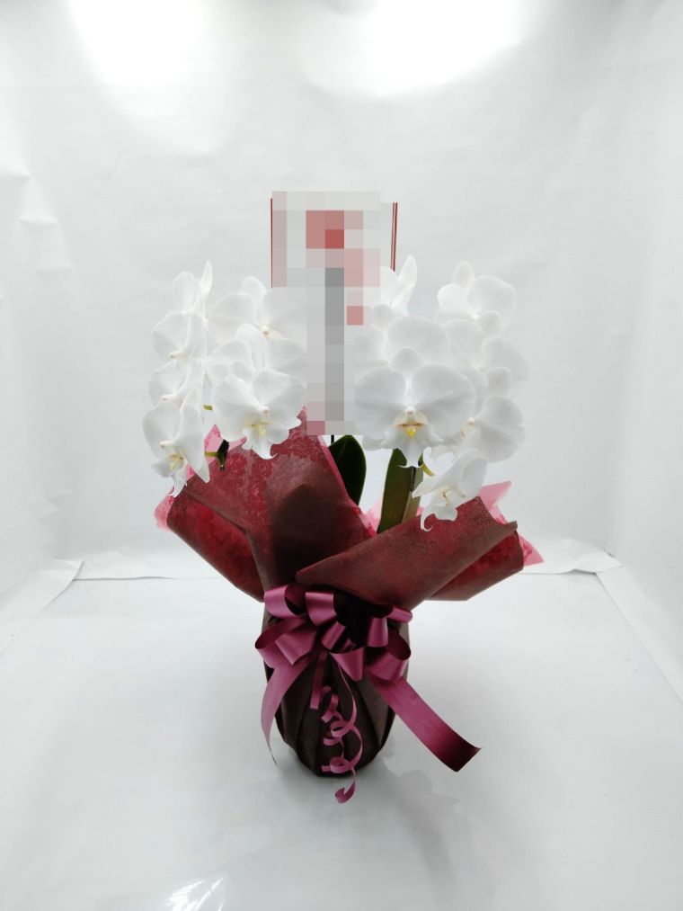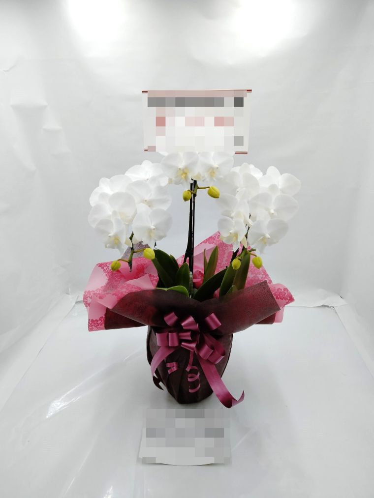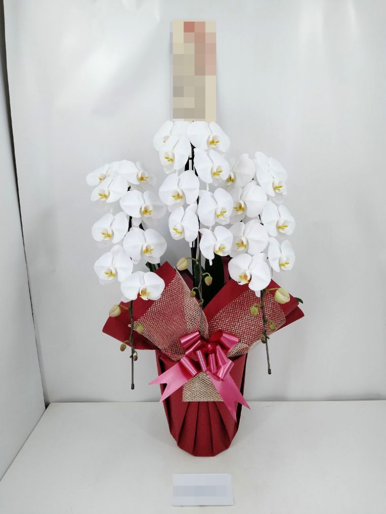 胡蝶蘭の実際にお届けした写真です。花秘書では発送前に写真をメールで送信致しますので安心して大切な顧客や取引様へのギフトにご利用頂けます。