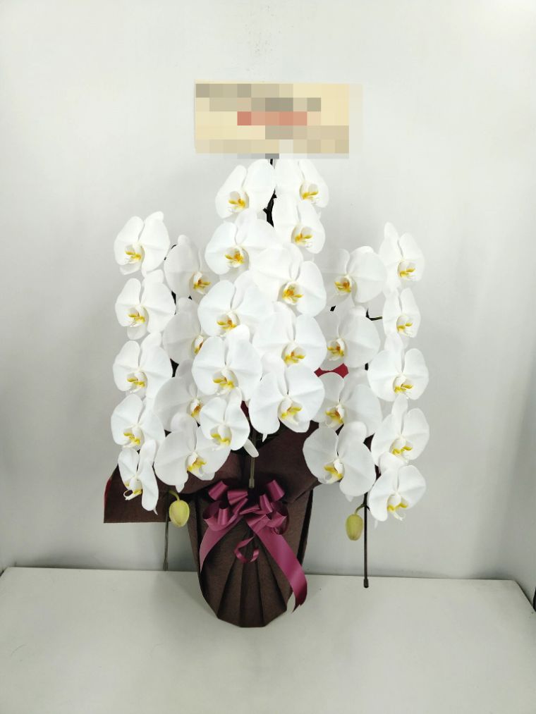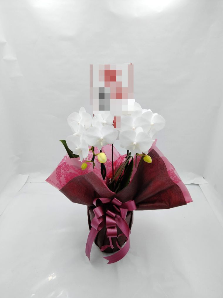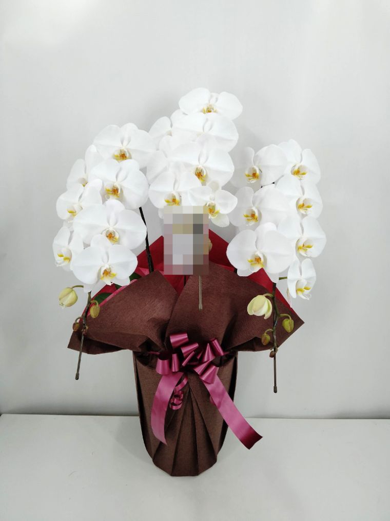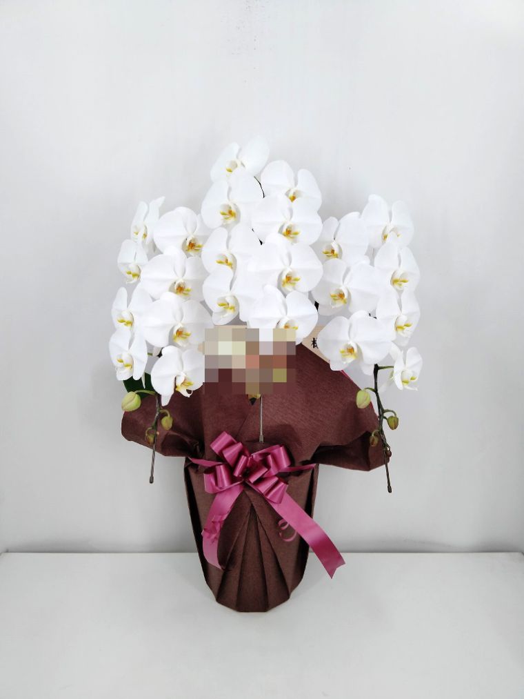 胡蝶蘭の実際にお届けした写真です。花秘書では発送前に写真をメールで送信致しますので安心して大切な顧客や取引様へのギフトにご利用頂けます。