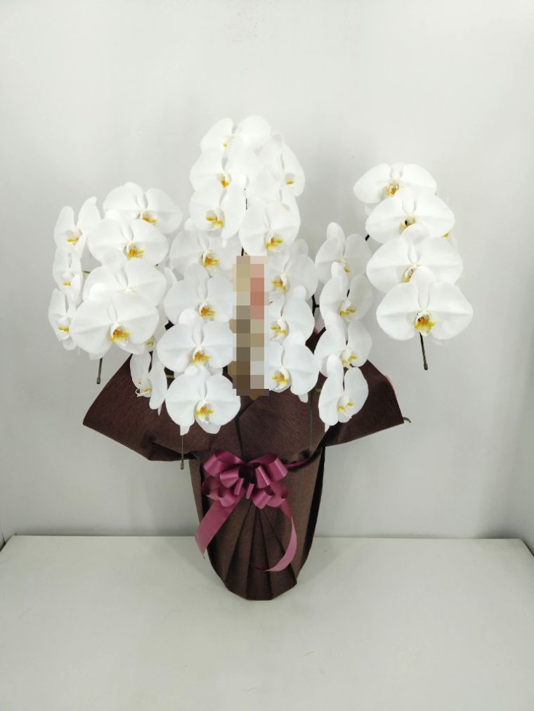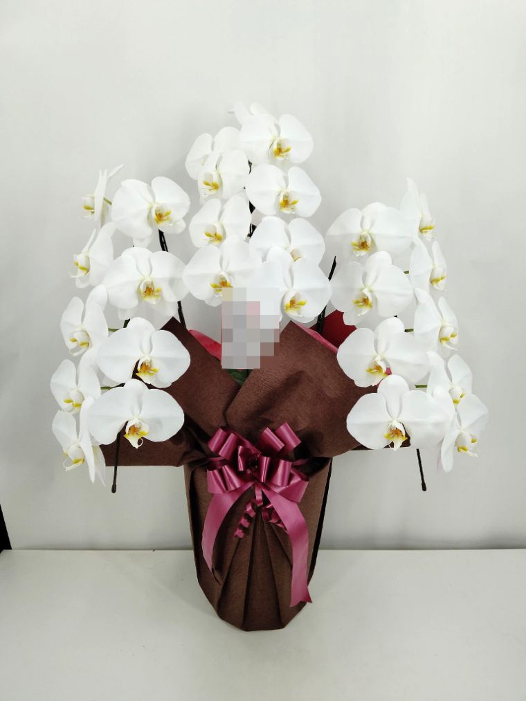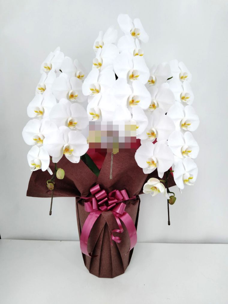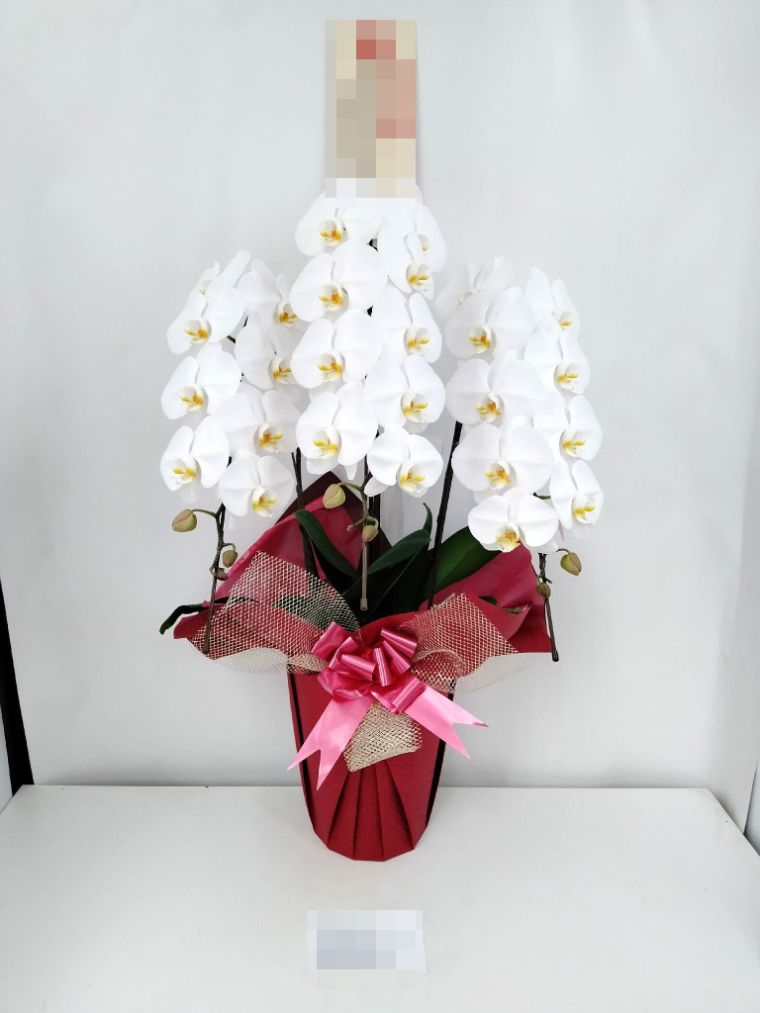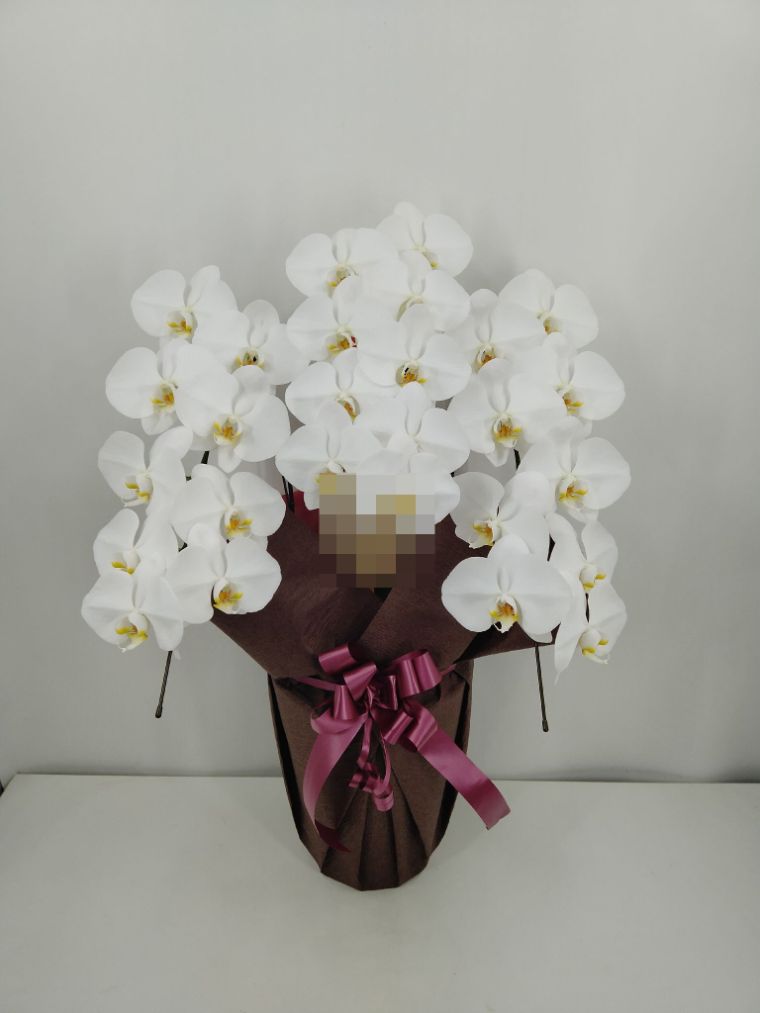 胡蝶蘭の実際にお届けした写真です。花秘書では発送前に写真をメールで送信致しますので安心して大切な顧客や取引様へのギフトにご利用頂けます。