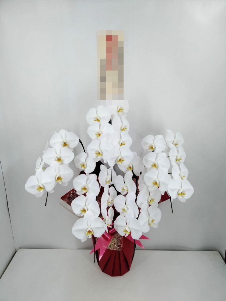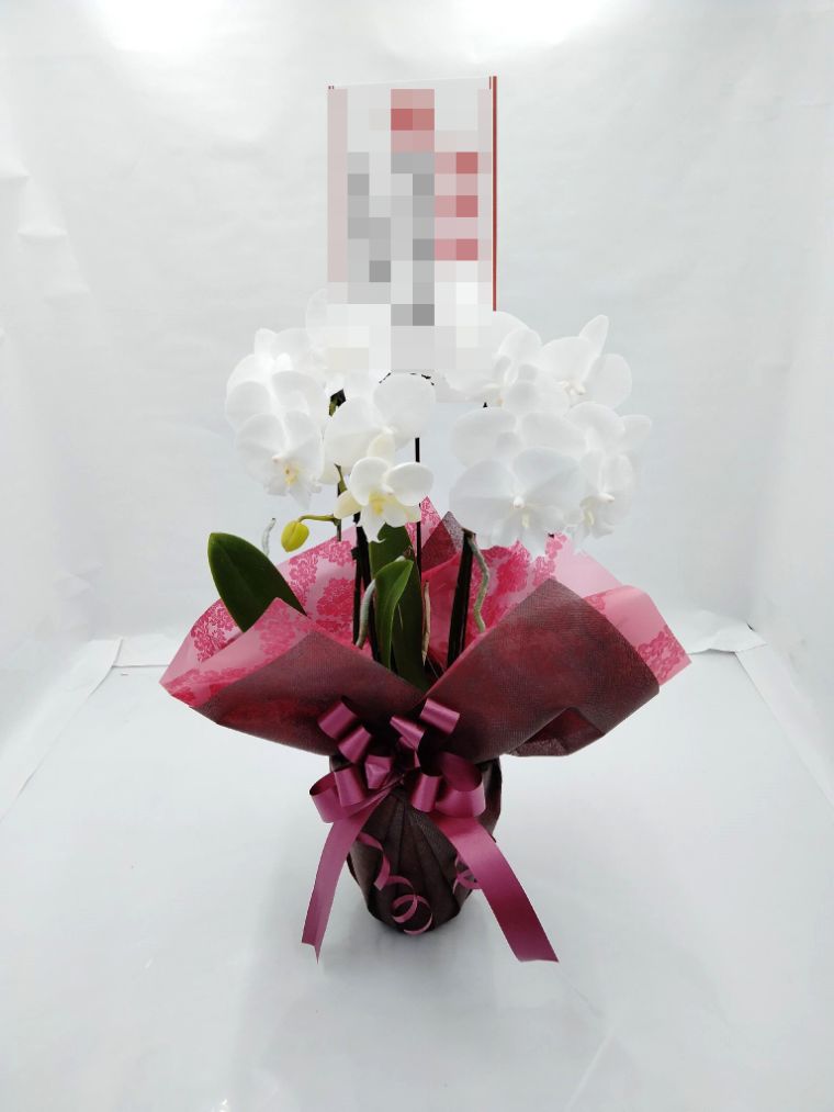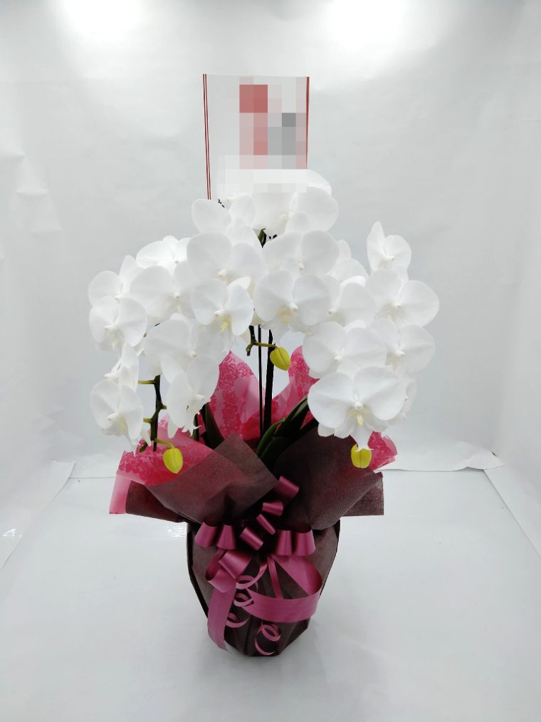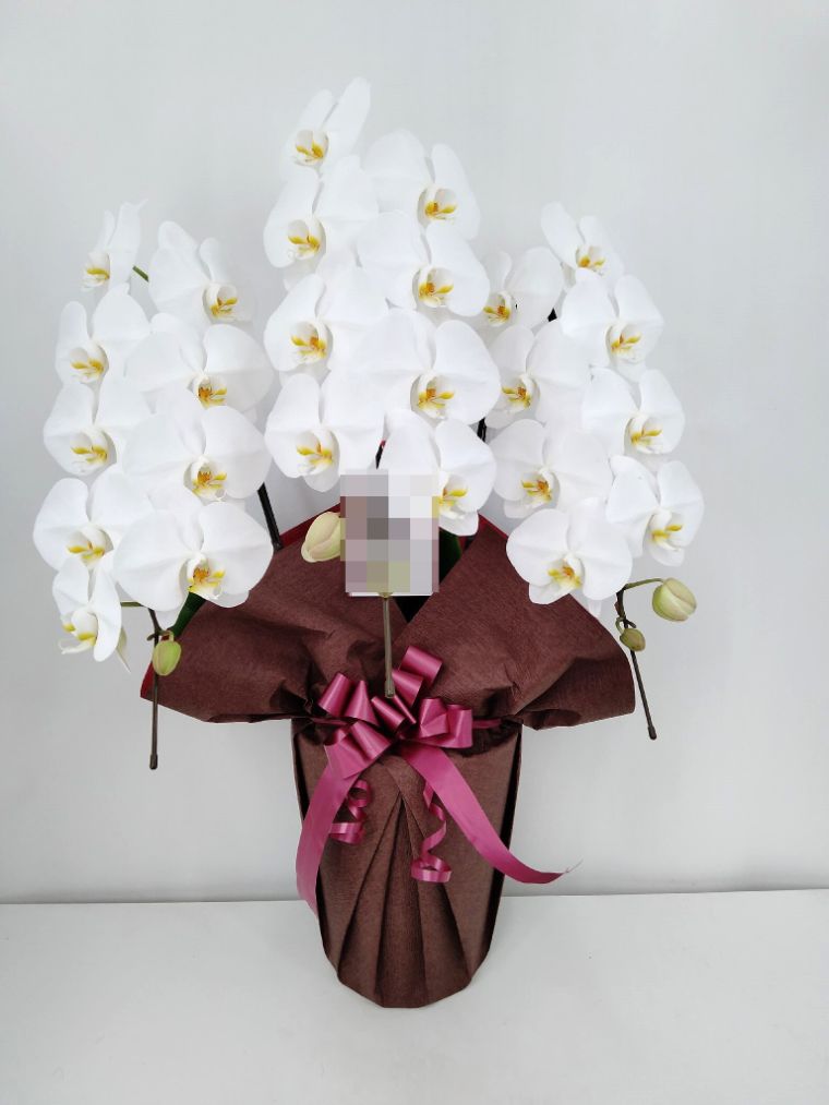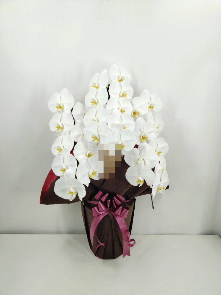 胡蝶蘭の実際にお届けした写真です。花秘書では発送前に写真をメールで送信致しますので安心して大切な顧客や取引様へのギフトにご利用頂けます。