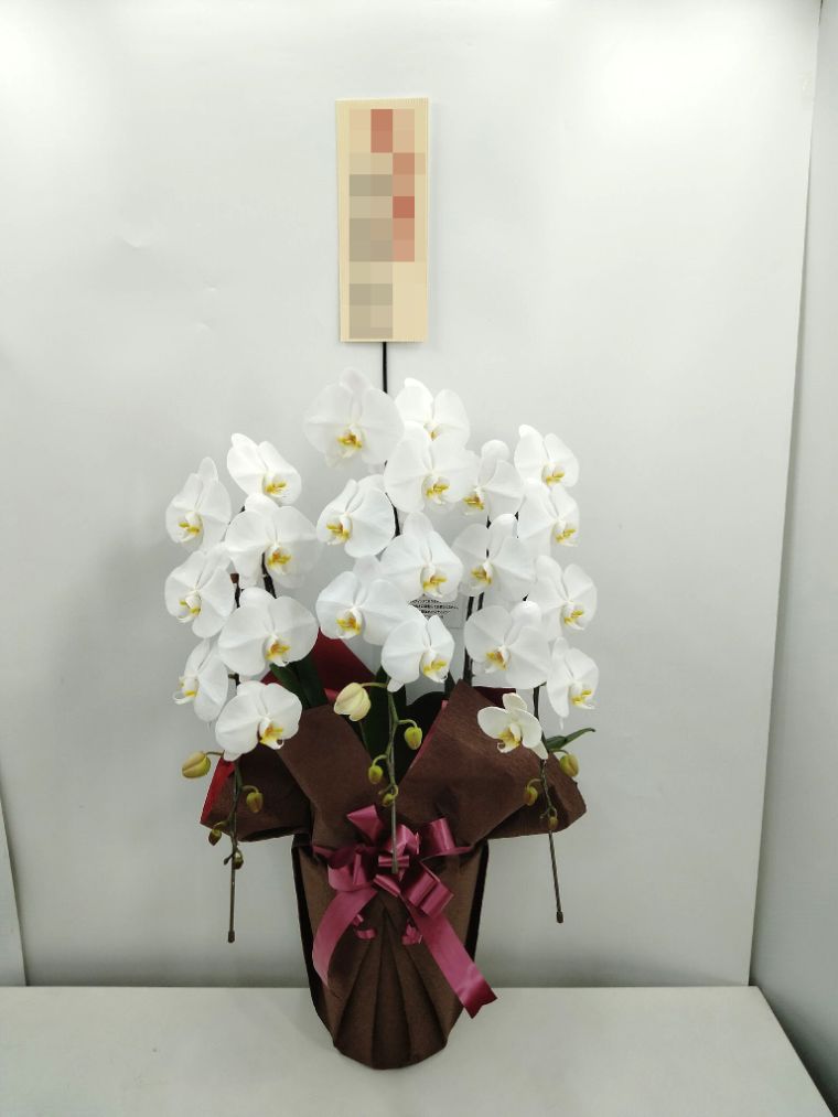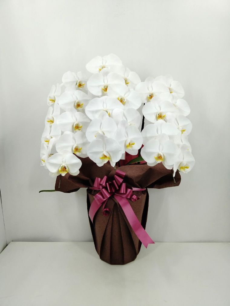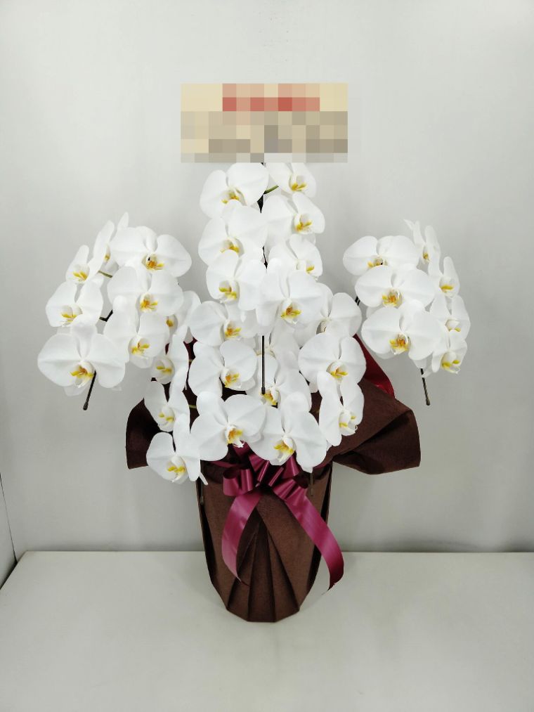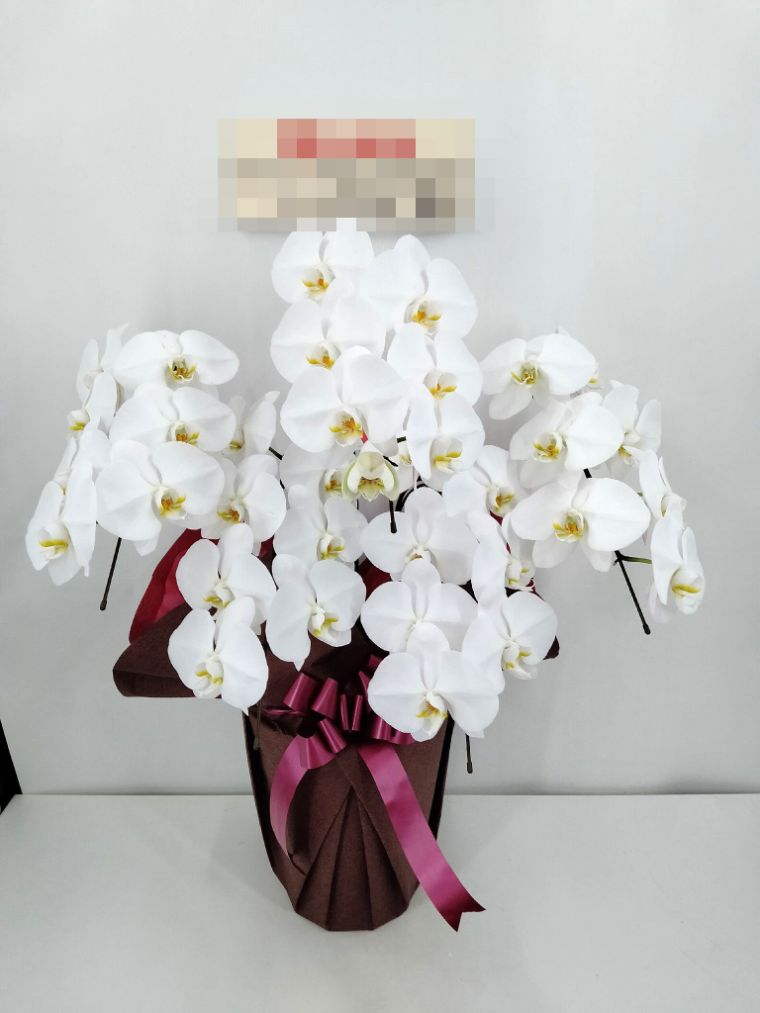 胡蝶蘭の実際にお届けした写真です。花秘書では発送前に写真をメールで送信致しますので安心して大切な顧客や取引様へのギフトにご利用頂けます。