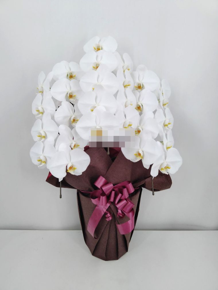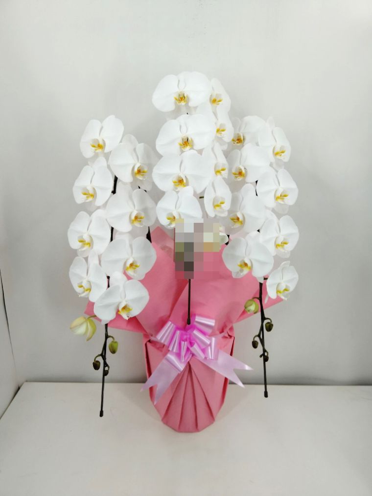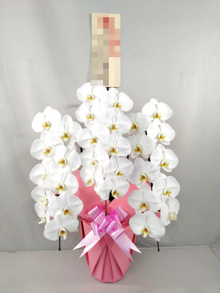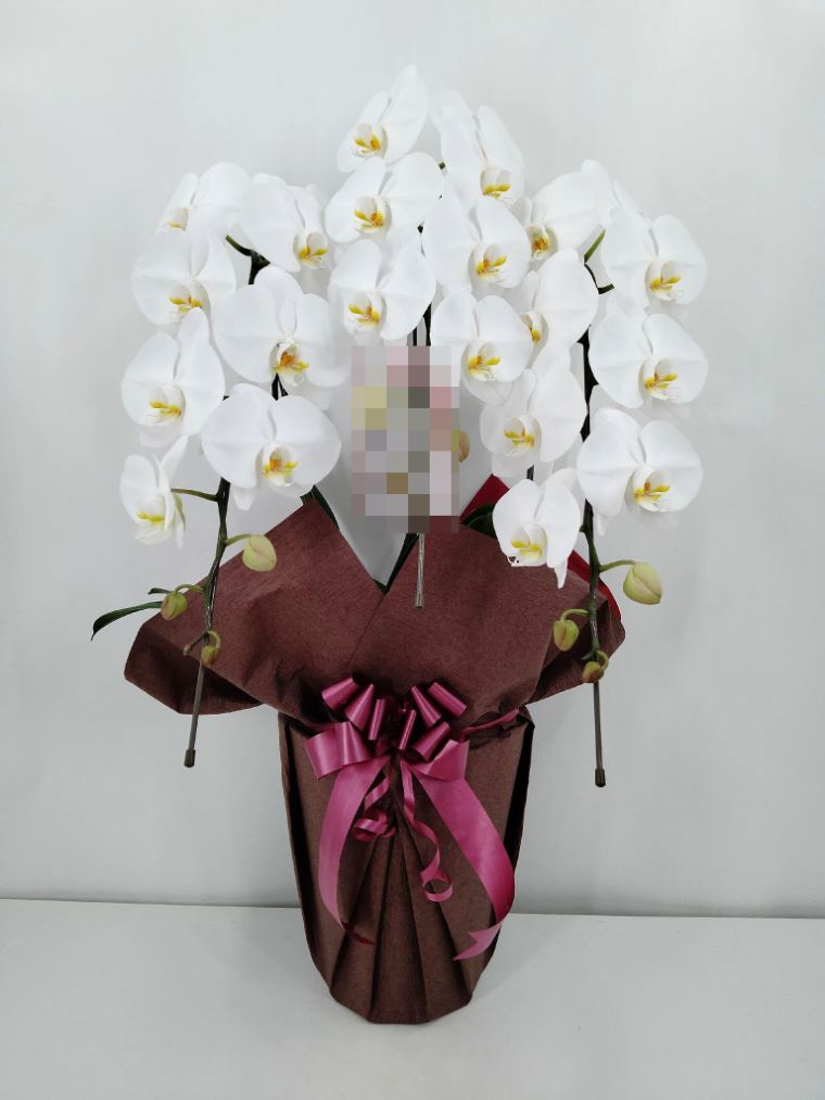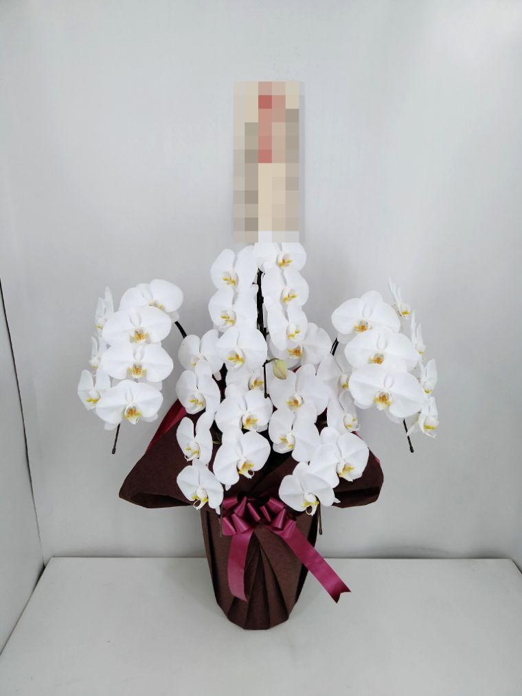胡蝶蘭の実際にお届けした写真です。花秘書では発送前に写真をメールで送信致しますので安心して大切な顧客や取引様へのギフトにご利用頂けます。