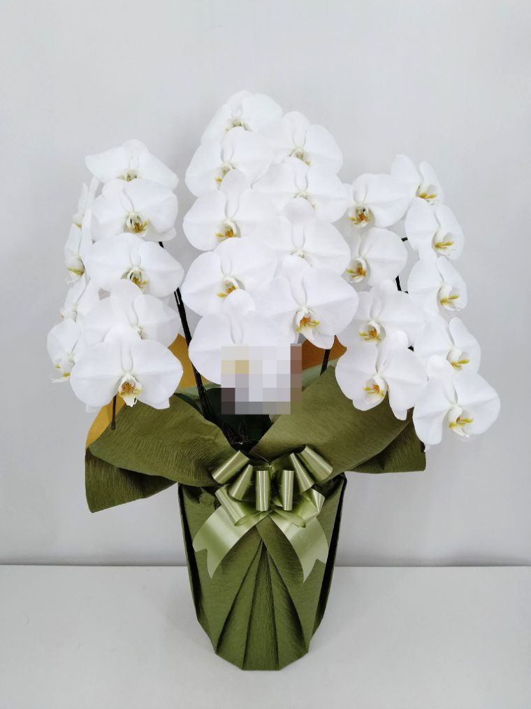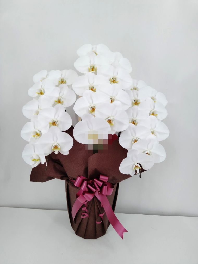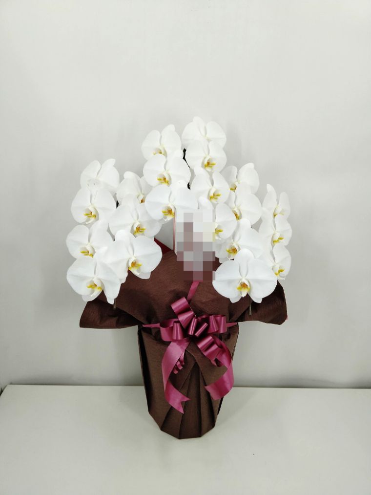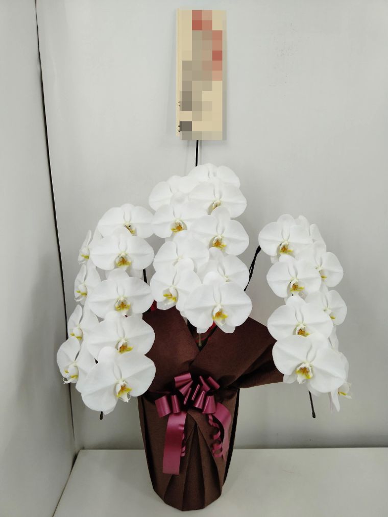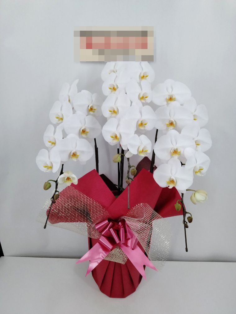 胡蝶蘭の実際にお届けした写真です。花秘書では発送前に写真をメールで送信致しますので安心して大切な顧客や取引様へのギフトにご利用頂けます。